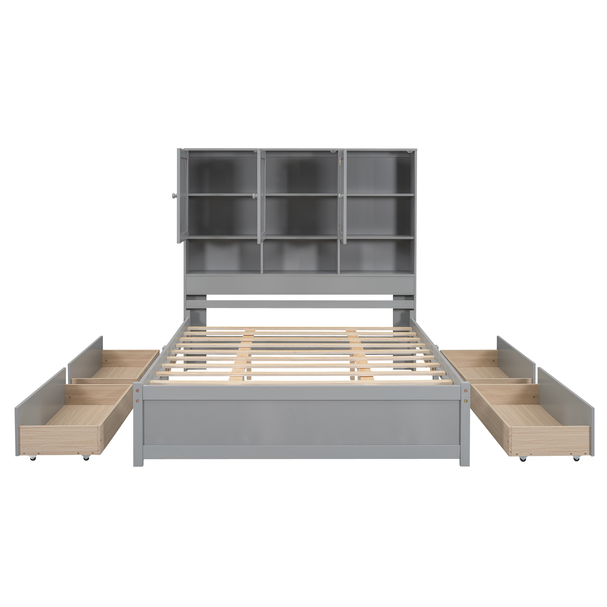 ModernLuxe Queen Size Platform Bed with Storage Headboard and 4 Drawers Gray