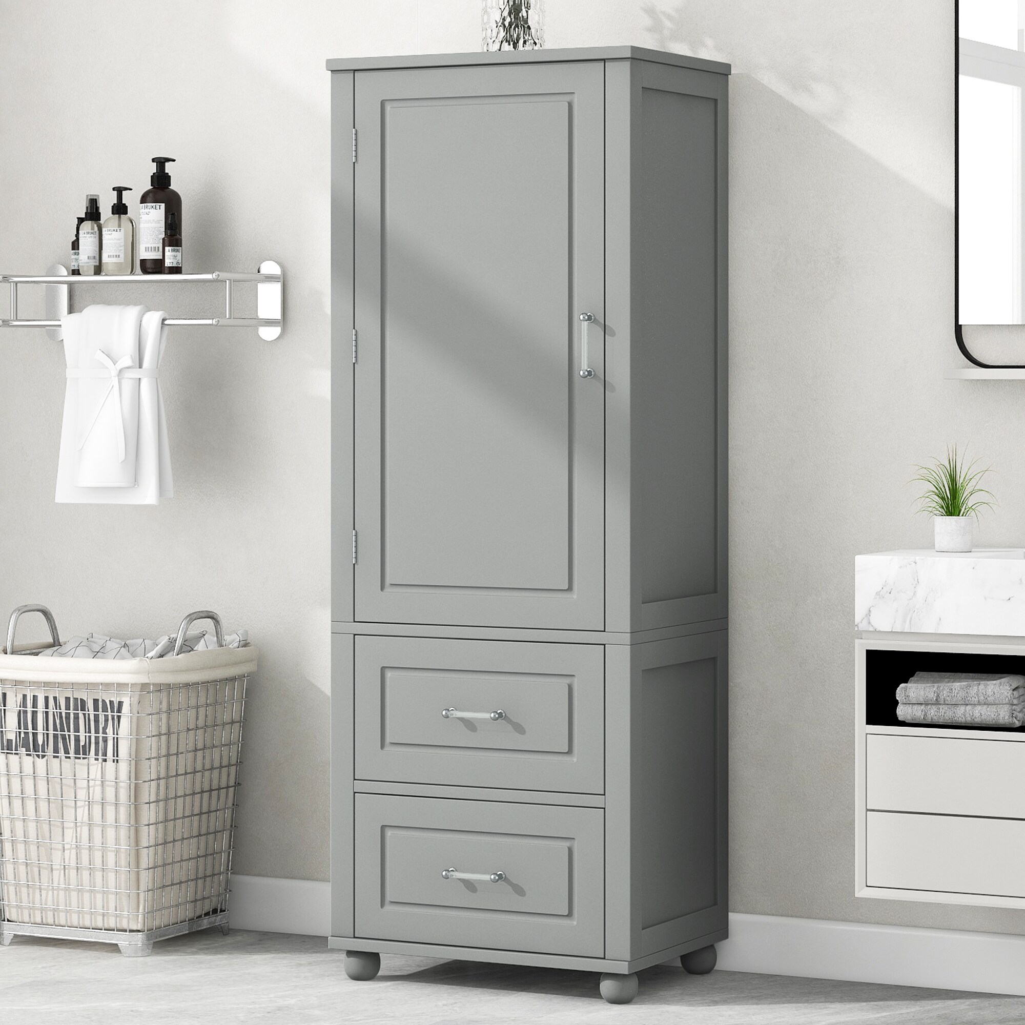 ModernLuxe Tall Bathroom Storage Cabinet Freestanding Storage Cabinet with Two Drawers and Adjustable Shelf MDF Board with Painted Finish Grey