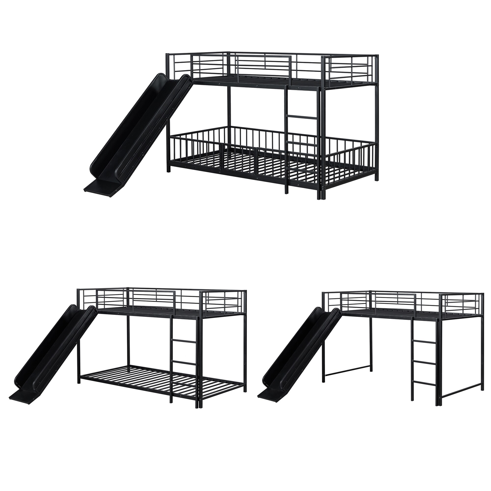ModernLuxe Twin over Twin Size Metal Bunk Bed with Slide and Guardrails Black