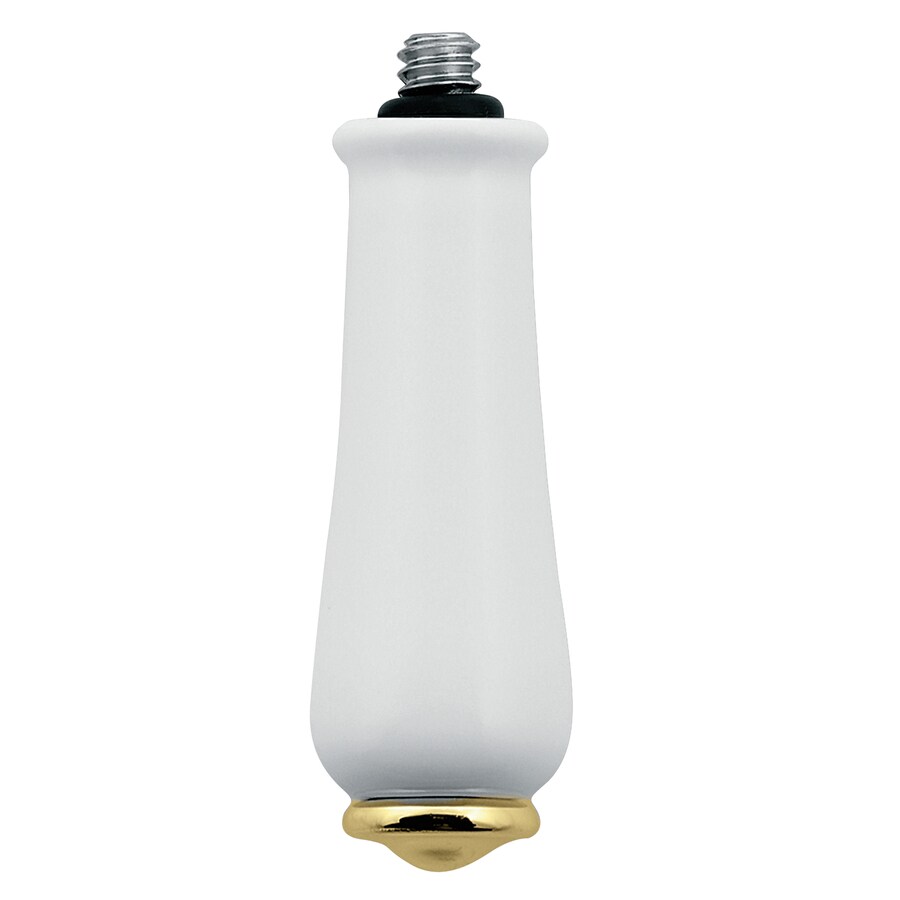 Porcelain/polished-brass finish combines a bright-brass look with clean-white porcelain accents