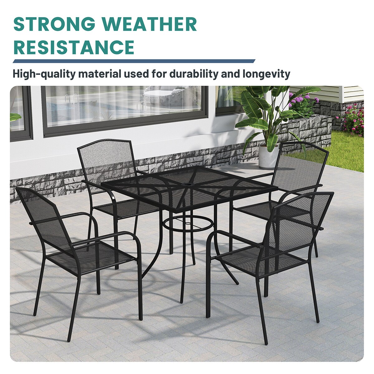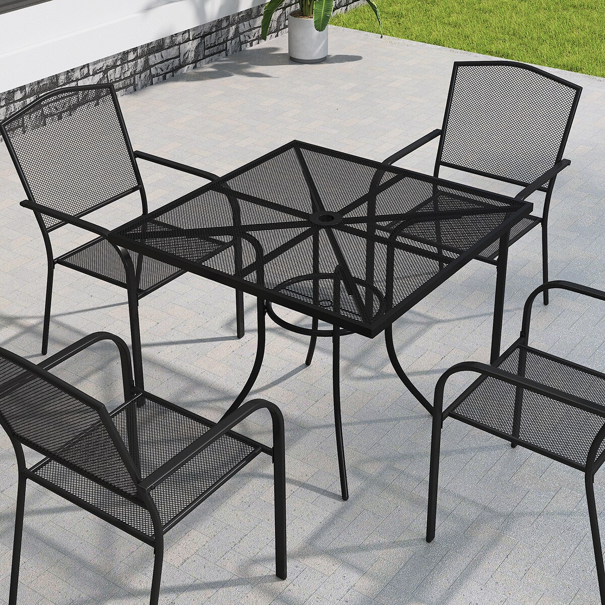 Mondawe Square Outdoor Dining Table 36-in W x 36-in L with Umbrella Hole