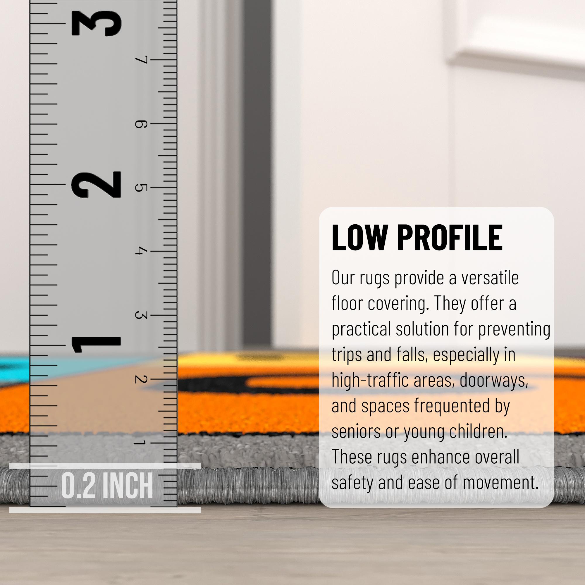 [ULTRA THIN]: An ultra thin pile thickness of 0.2 inches offers ideal functionality that is perfect for busy areas, underneath furniture, and in entryways as it will not obstruct doorways.