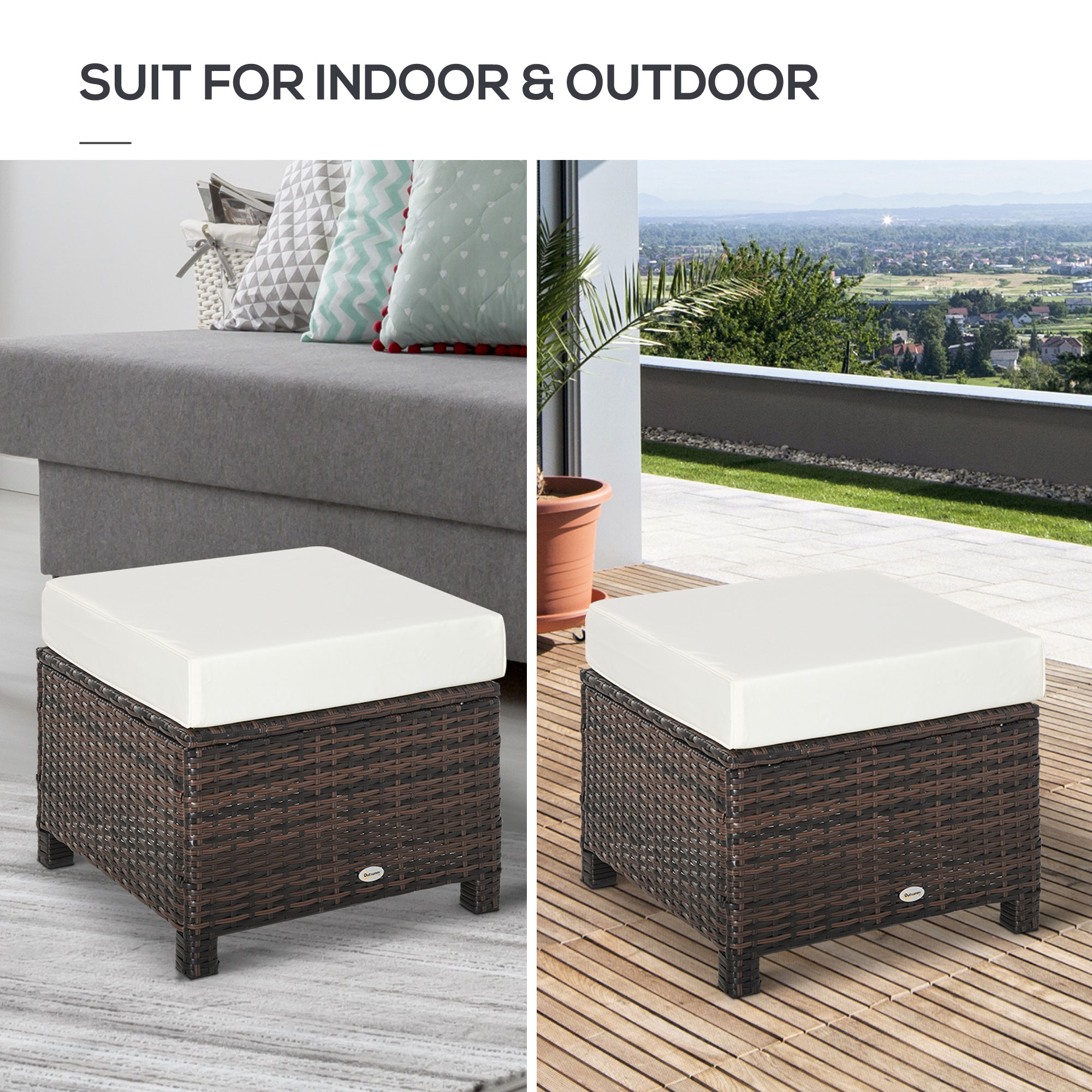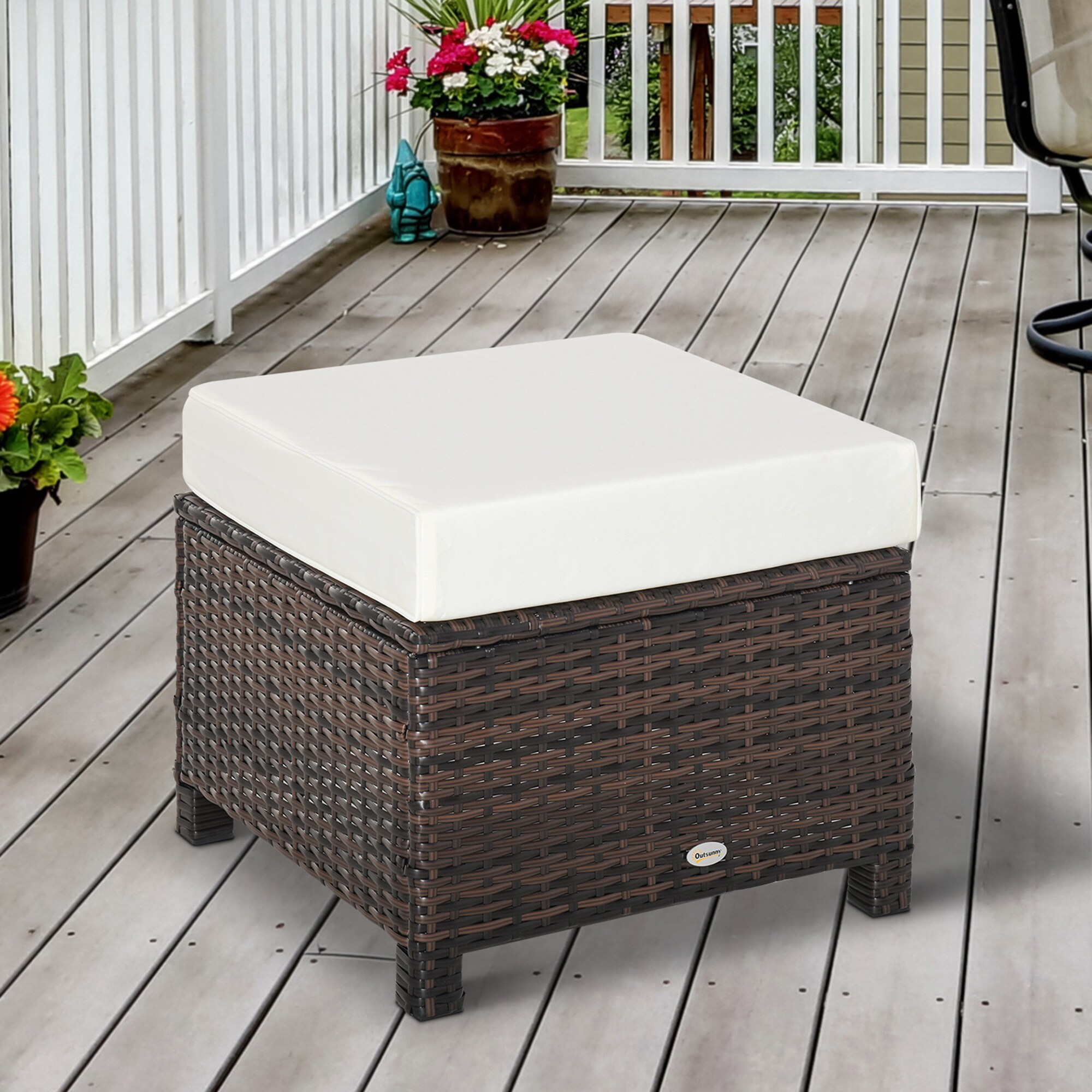 Outsunny 20in Patio Wicker Ottoman Multipurpose Outdoor PE Rattan Footrest Additional Seating Side Table with Soft Cushion Brown White