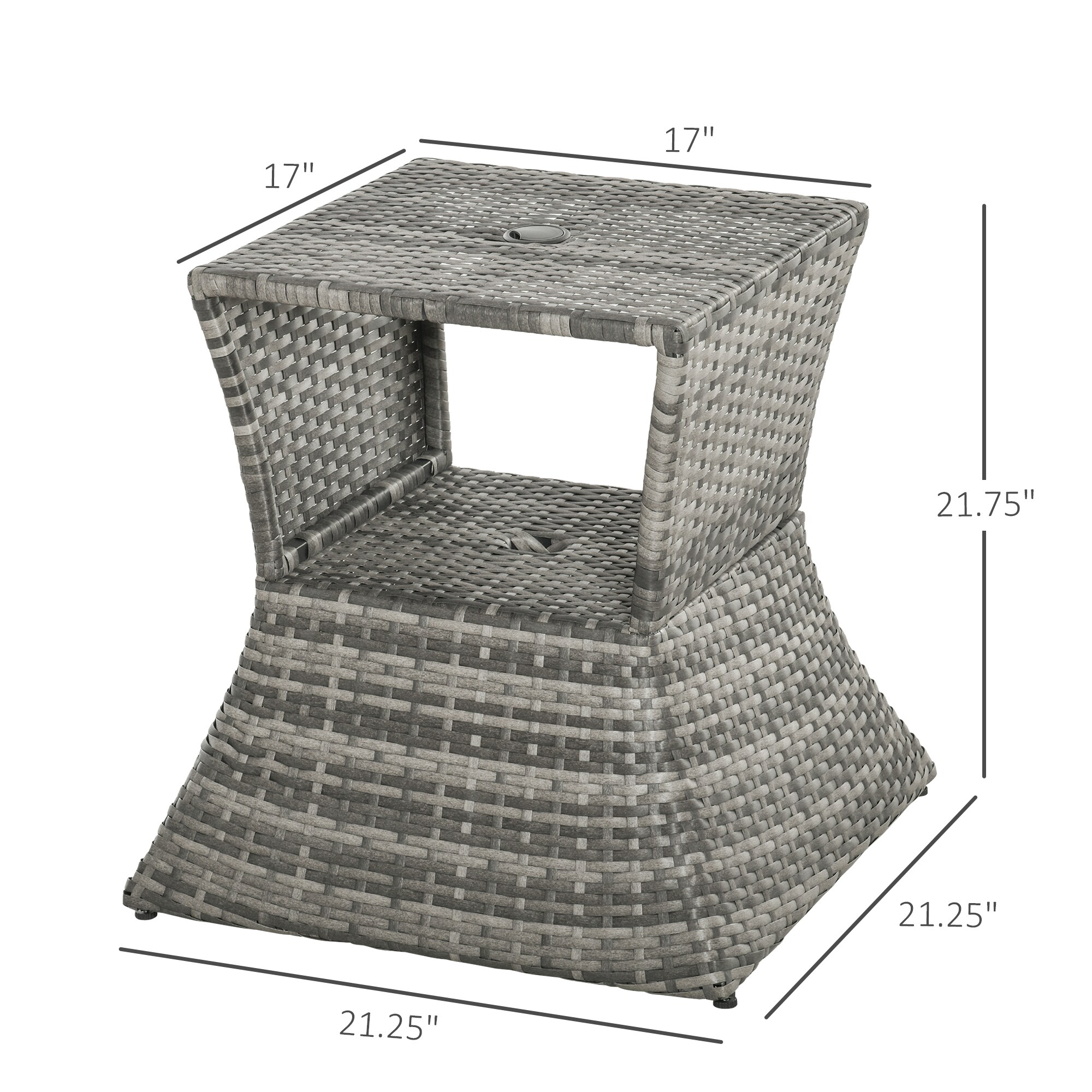 Outsunny Outdoor Side Table with Umbrella Hole 2 Tier Rattan Wicker End Table with Storage Shelf All Weather for Outdoor Patio Garden Backyard Mixed Gray