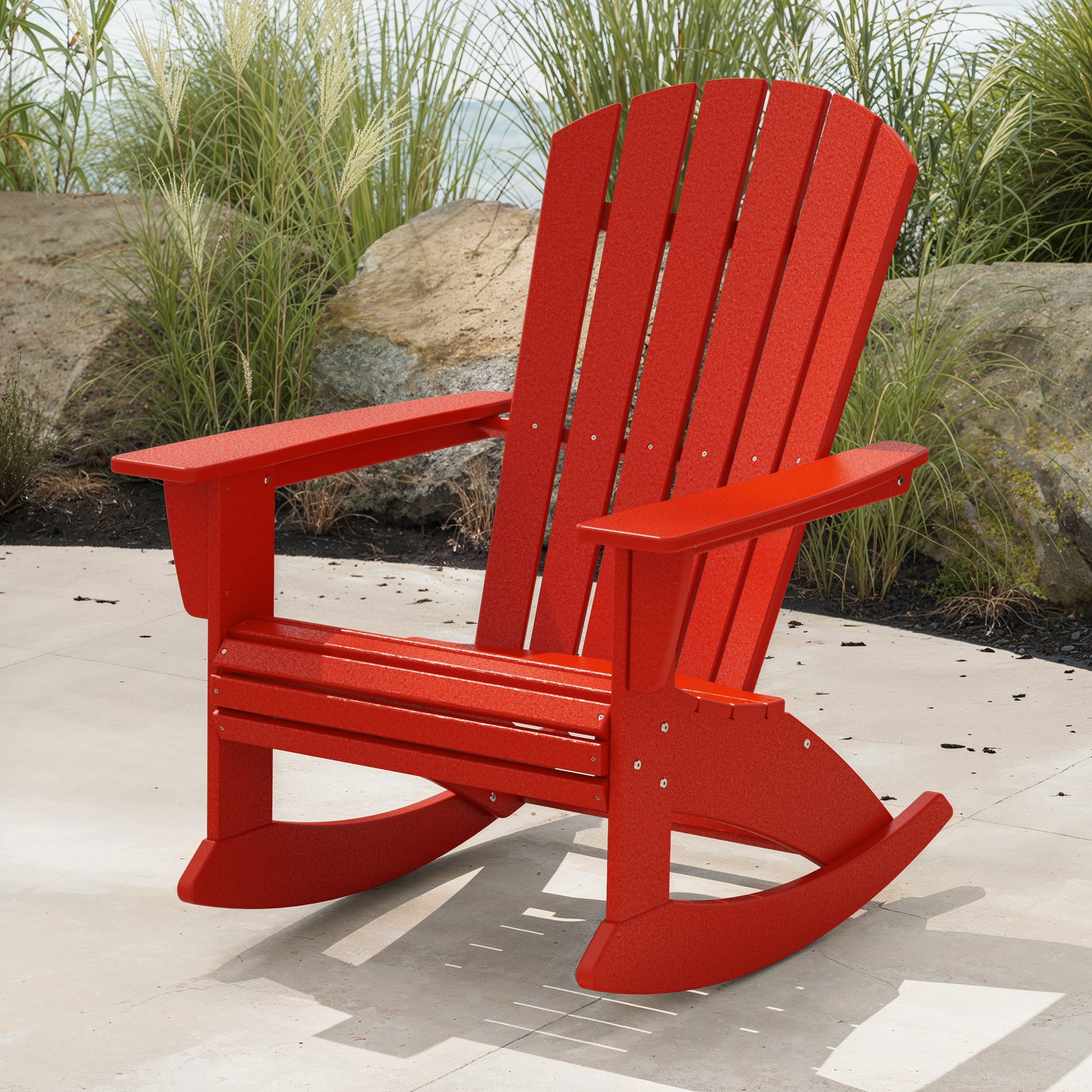 POLYWOOD Nautical Sunset Red Plastic Frame Rocking Chair with Slat Seat