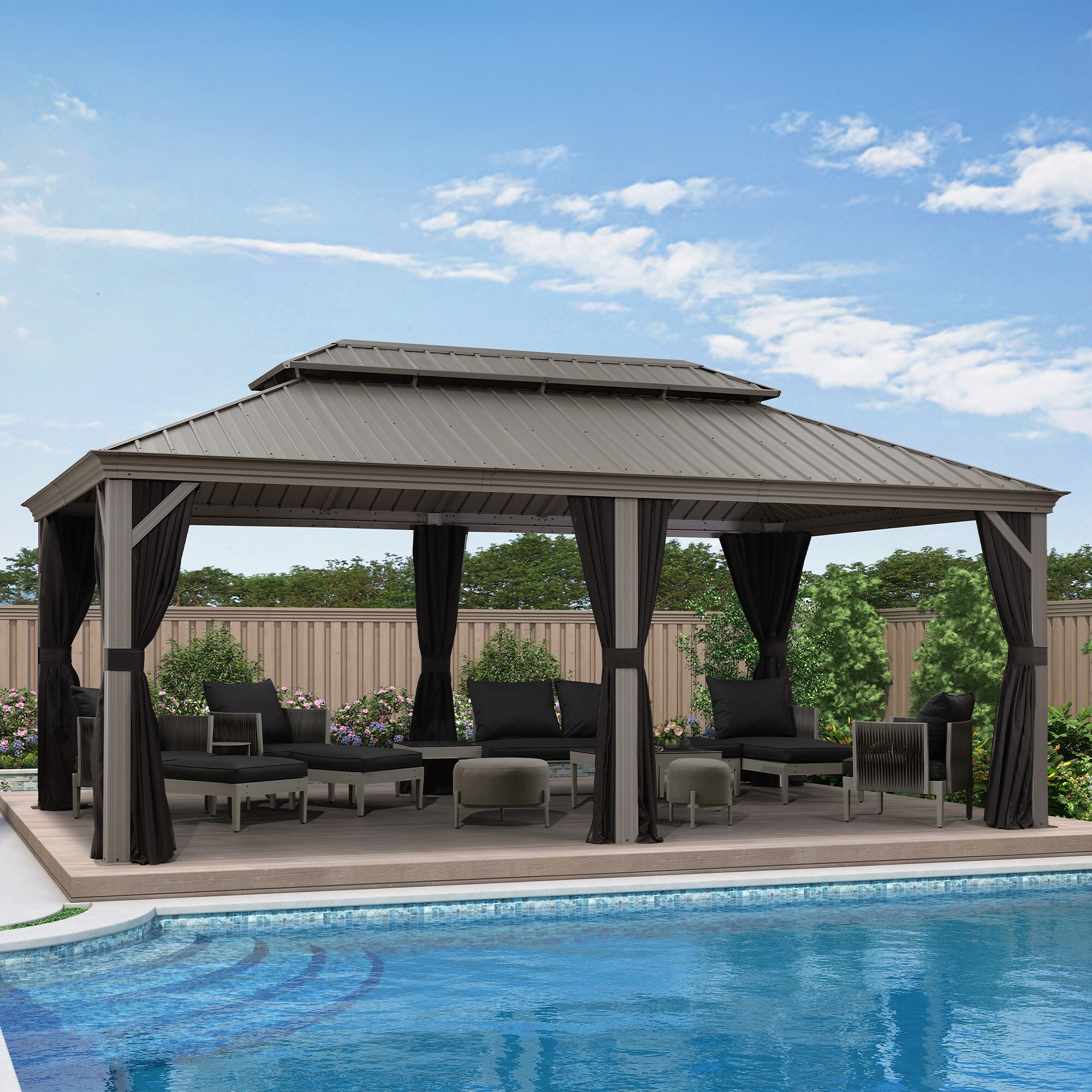 PURPLE LEAF 20-ft x 12-ft Hardtop Gazebo Light Gray Gazebo with Hardtop Roof (Screen Included)