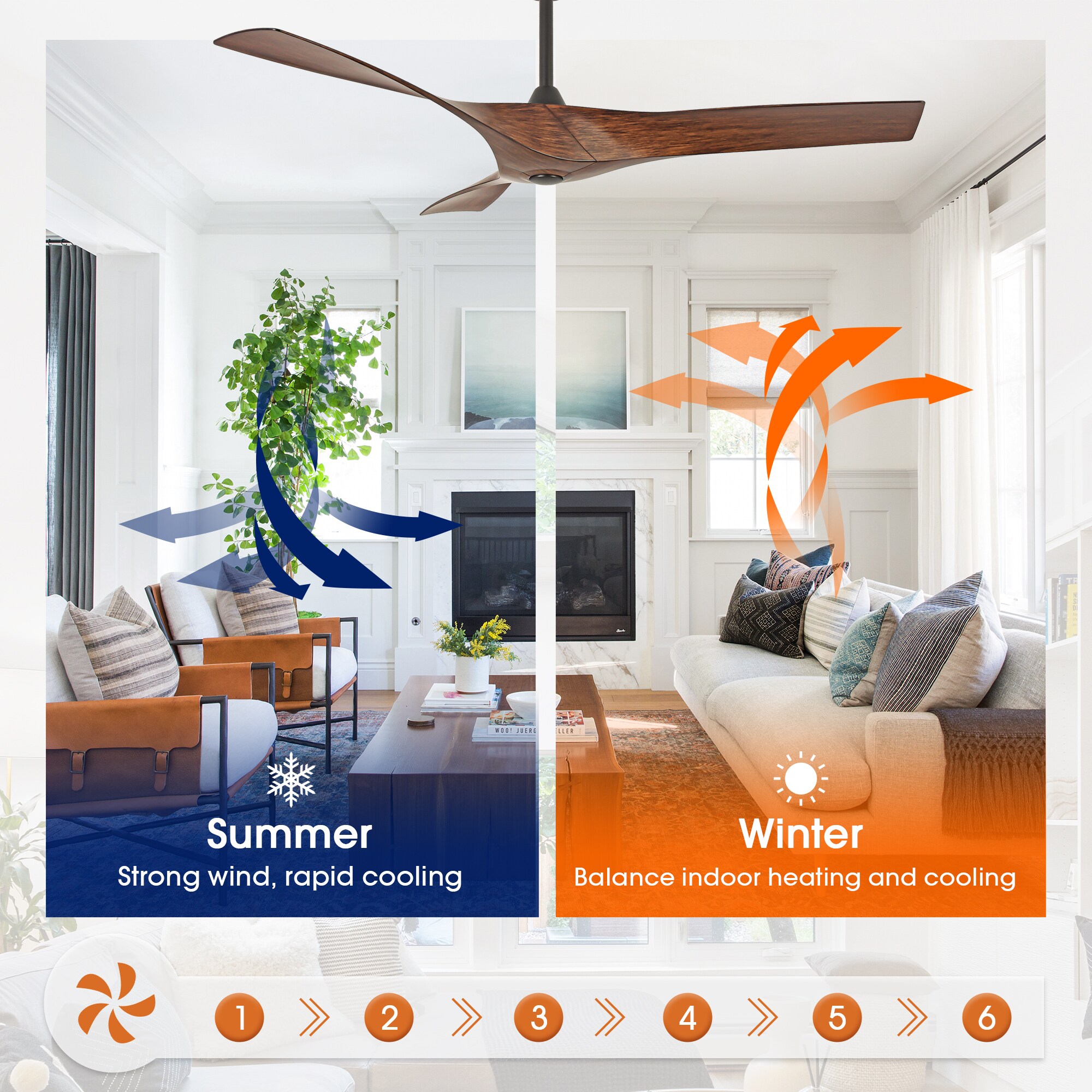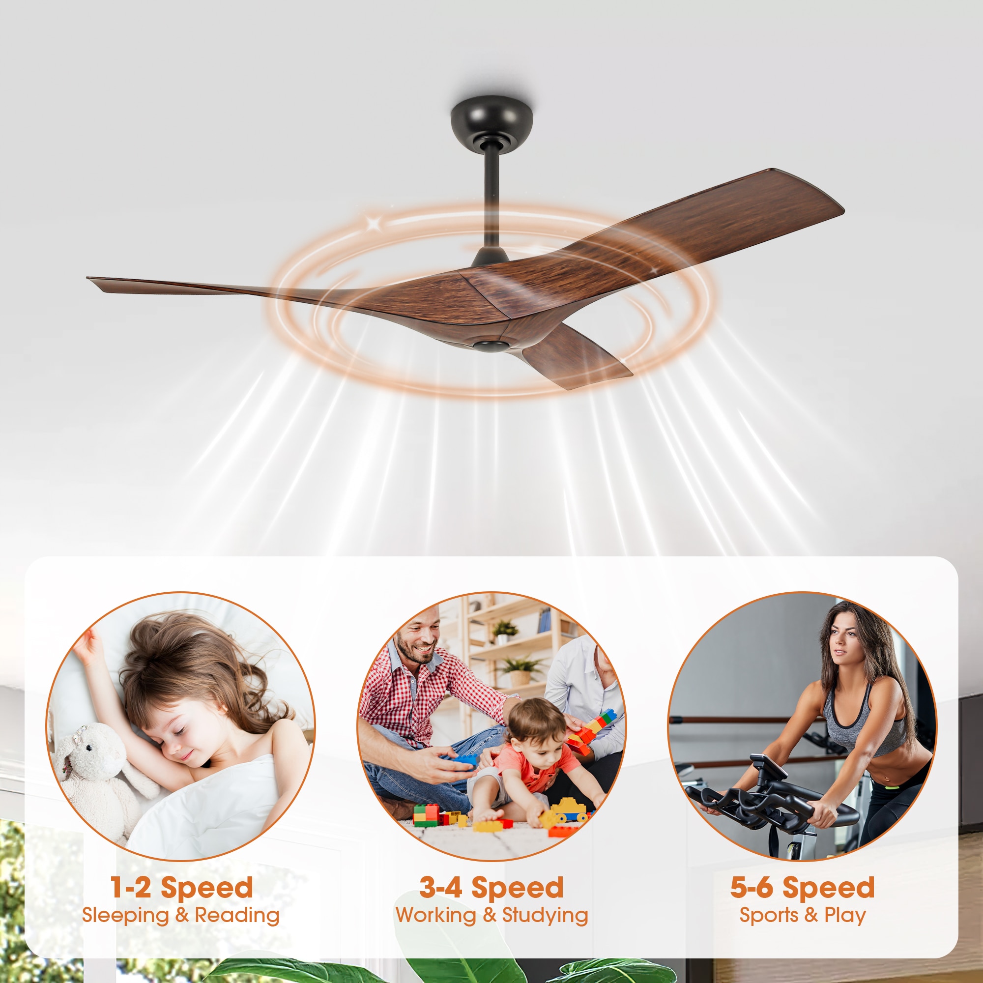 The 52-inch ceiling fan offers the perfect updated look to any indoor space and any room in the house with its transitional yet updated design in a black finish with three brown blades. The motor features superior air movement with 6 speeds and a reverse function. The multi-function handy remote control provides speed control.