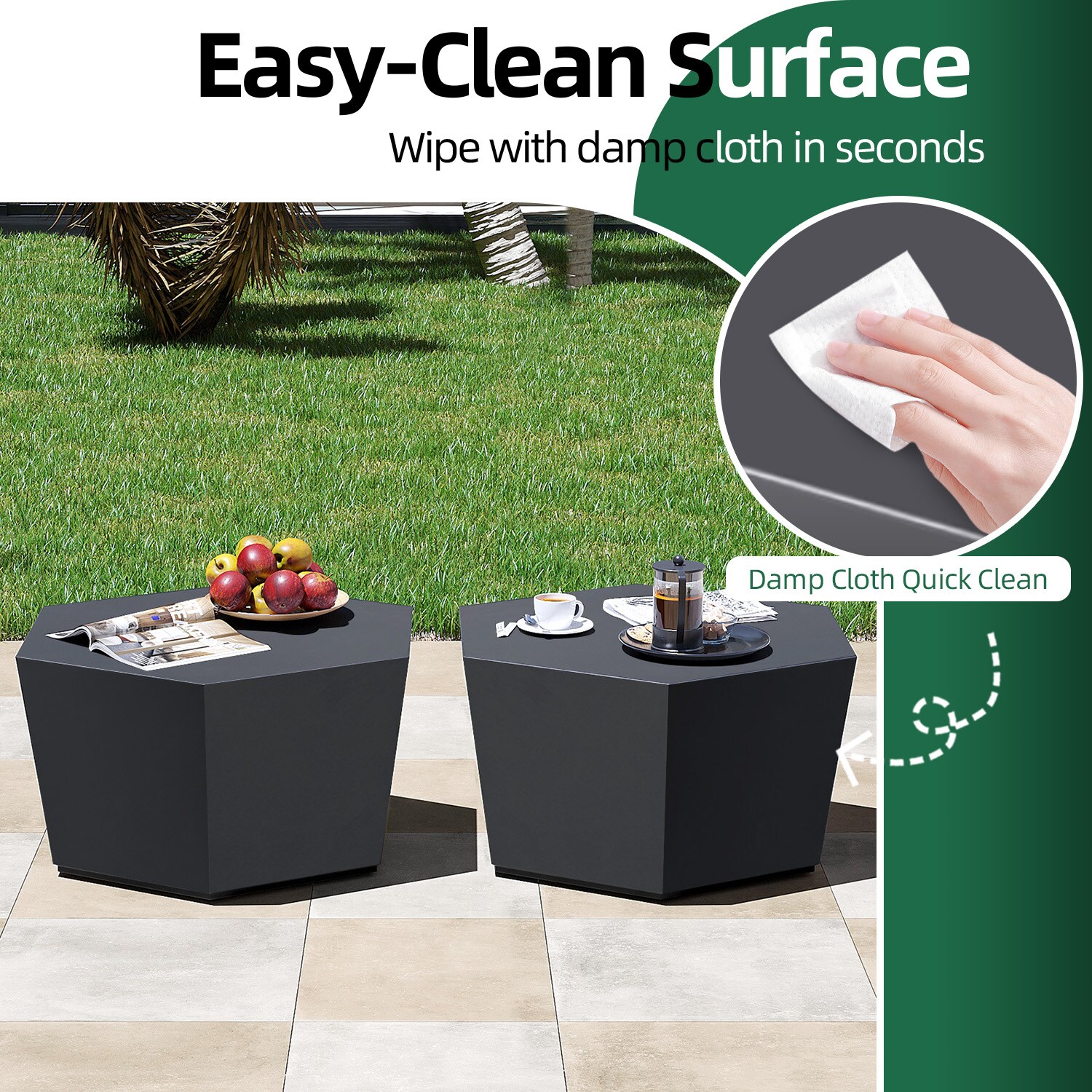 Bring sleek functionality to your outdoor space with this stylish hexagonal patio table; designed for modern outdoor living, it offers a convenient spot for drinks and snacks while resisting weather and wear; ready to use right out of the box with no assembly required.