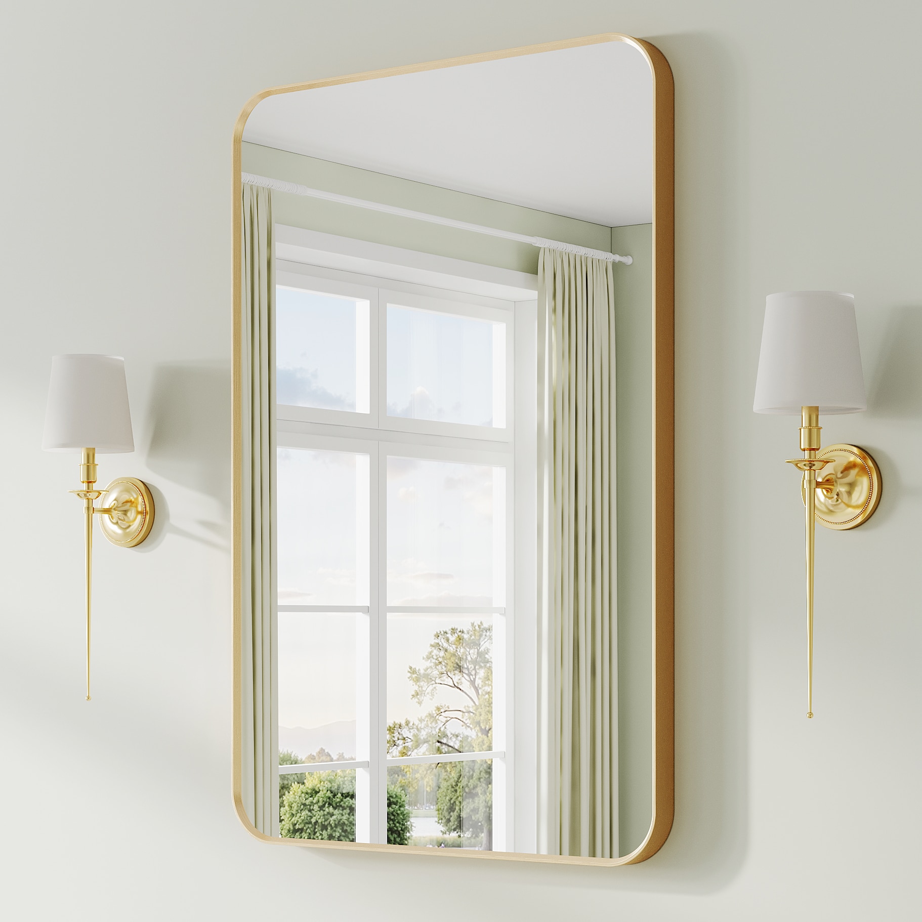 Poinic 24-in W x 36-in H Rectangle Brushed Gold Framed Wall Mirror