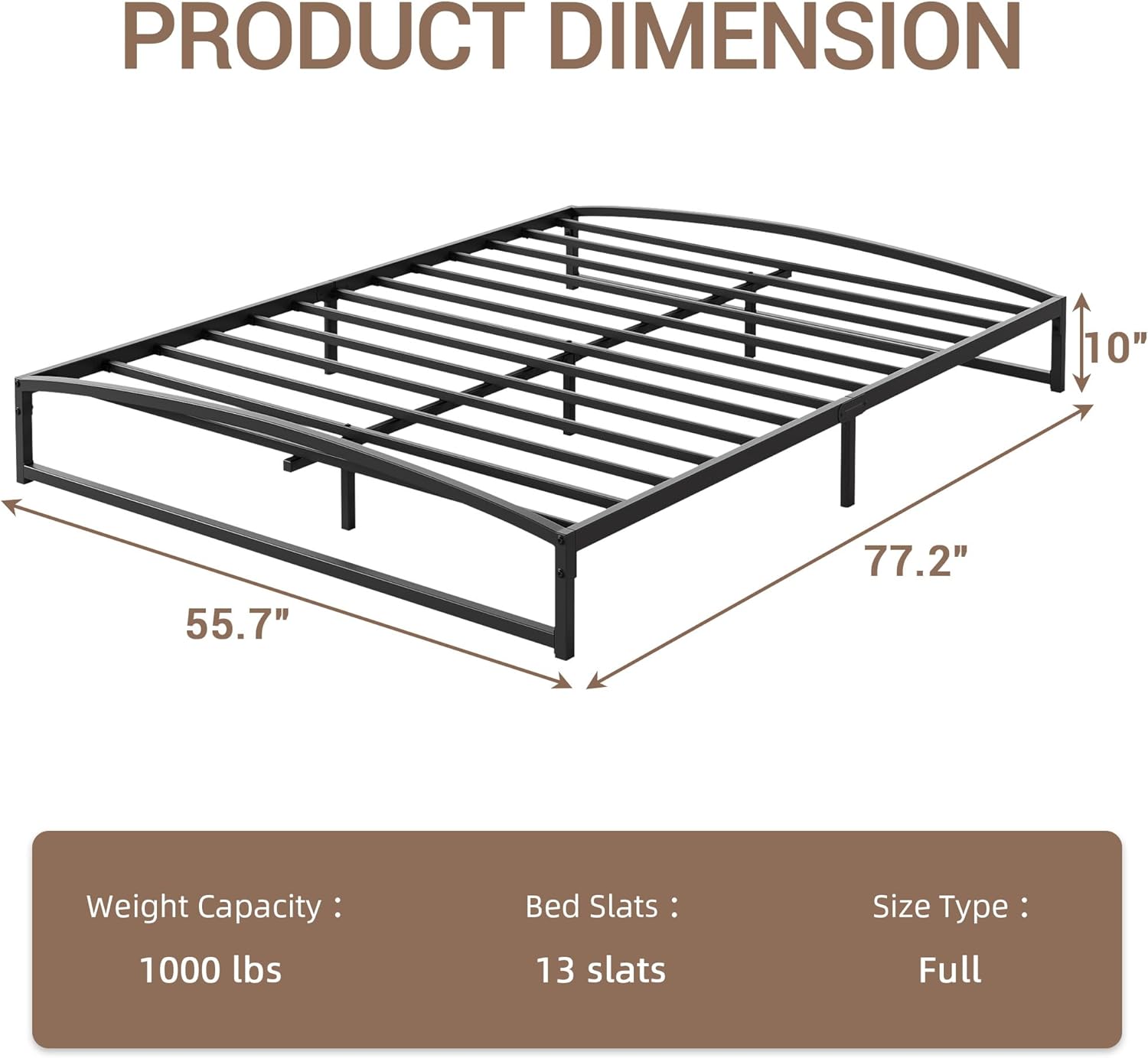 Qeetex 10 inch Full Size Metal Platform Bed Frame Low Bed Frame with Heavy Duty Slats Support with Under Bed Storage No Box Spring Needed Noise Free Non Slip Black