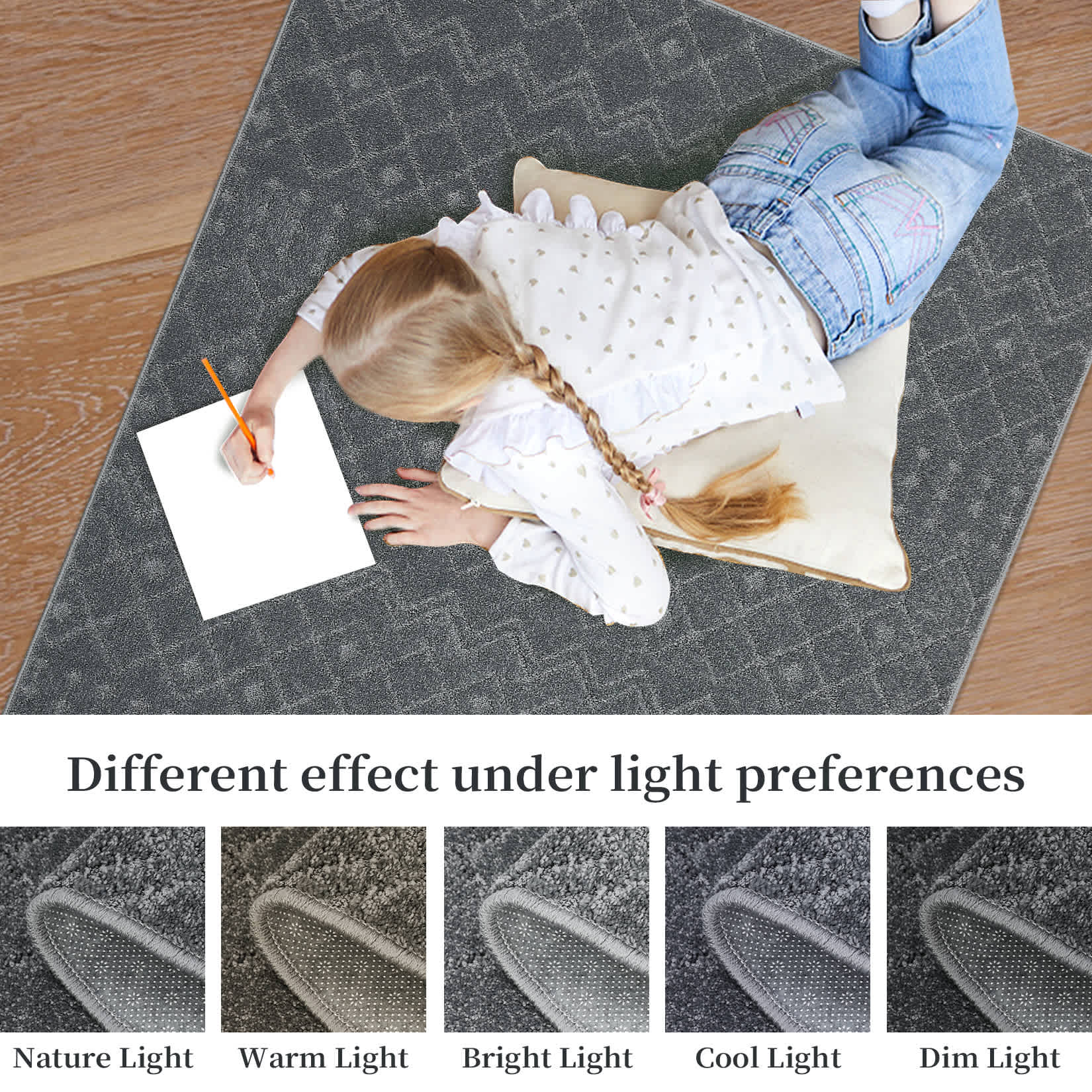 Qeetex 10 x 13 ft Polypropylene Fiber Dark Gray Rectangular Hallway Bathroom Entryway Kitchen Office Foldable Stair Printed Morocco Washable Area Rug
