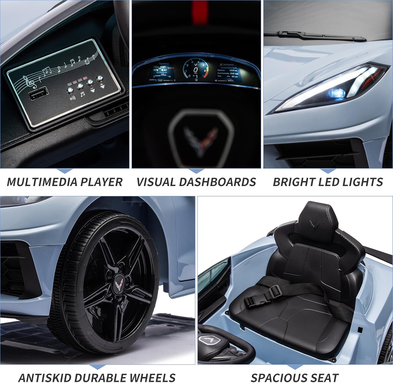 Qeetex 12V Licensed Corvette Kids Ride On Car With Remote Control LED Lights MP3 Player Sports Electric Vehicle Blue