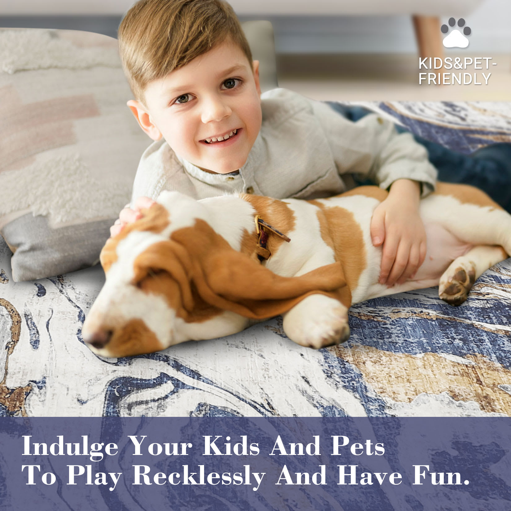 Qeetex 2 x 6 ft Polyester Imitation Cashmere Blue Rectangular Hallway Bathroom Entryway Kitchen Office Foldable Abstract Printed Modern Washable Area
