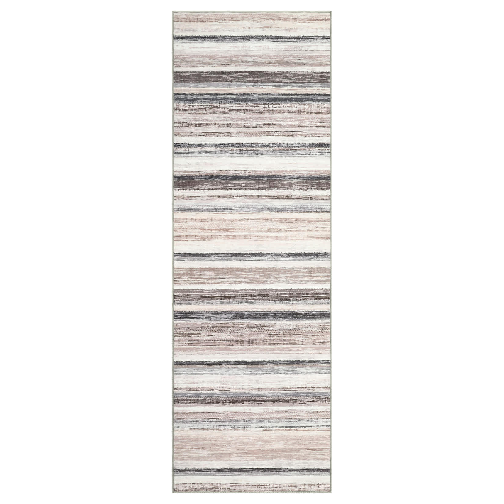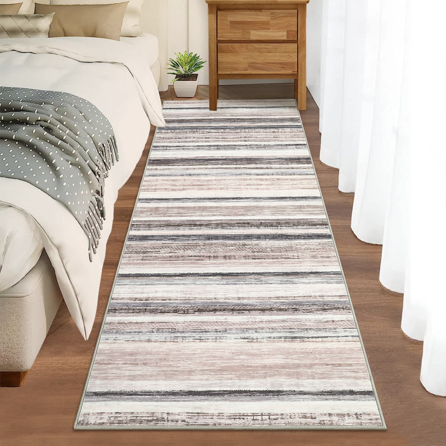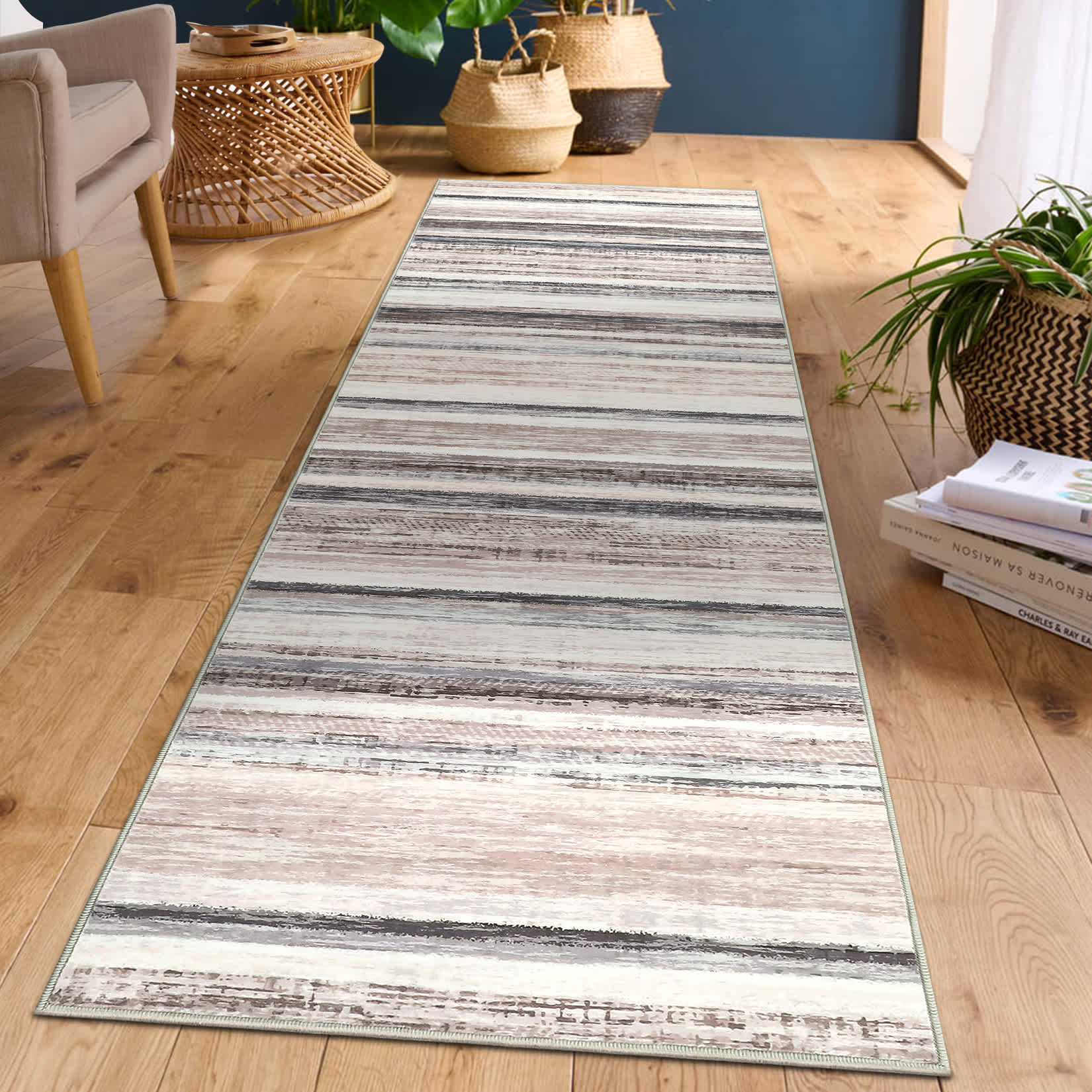This washable area rug features a contemporary modern strip pattern, adding a touch of sophistication to any space and making it perfect for your kitchen, laundry room, or bedroom.