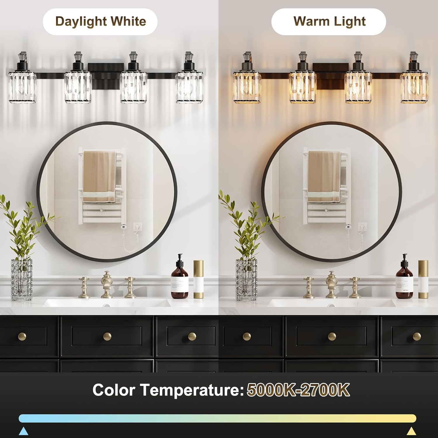 Transform your bathroom into a sanctuary of style and light with Qeetex. Our collection of modern vanity lights masterfully blends sleek, contemporary design with the timeless elegance of refined crystal and metal finishes. More than just a source of illumination, each fixture is a statement piece, designed to elevate your mirror and enhance your entire room with a warm, inviting glow.
