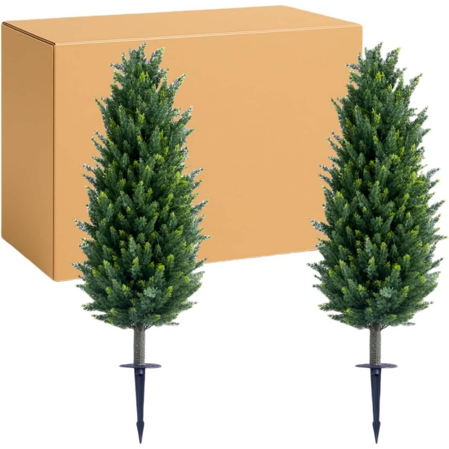 Qeetex 43Inch Artificial Cypress Topiary Trees Set of 2 with Ground Spike for Outdoor-Fake Topiary Ball Trees Artificial Plant Brush for Indoor Outdoor