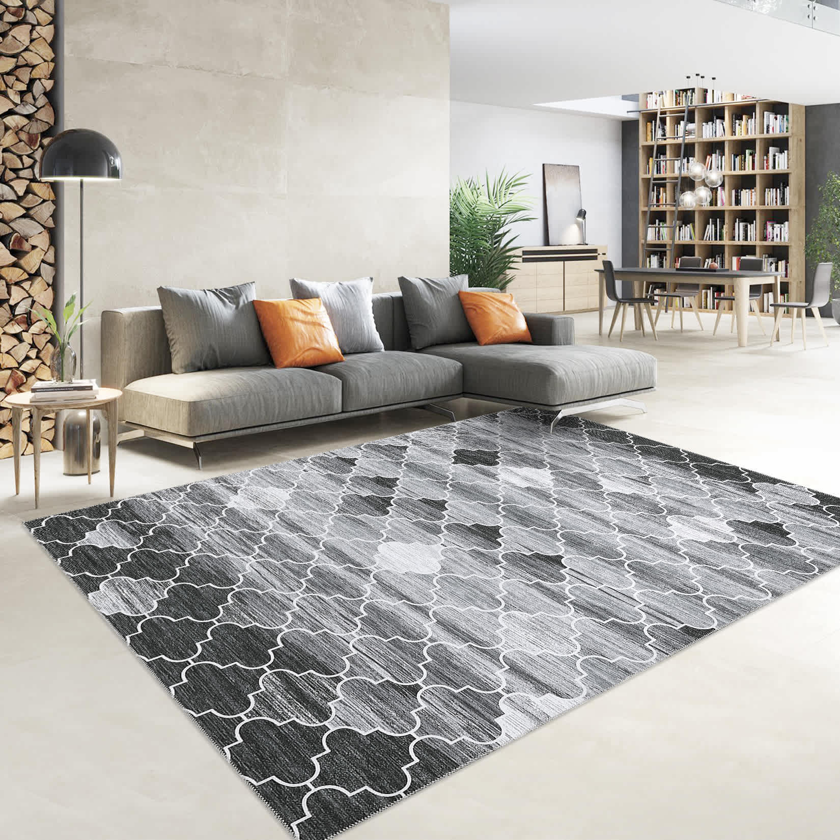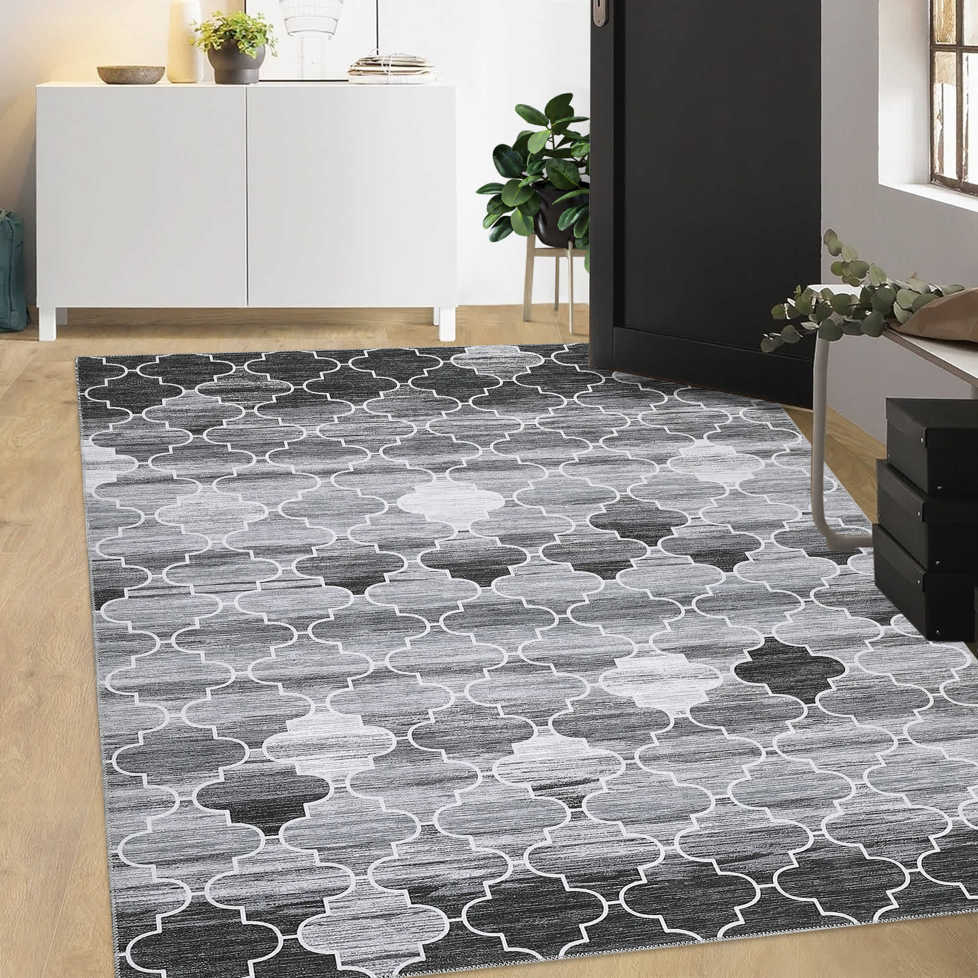 Qeetex 5 x 7 ft Polyester Chenille Gray Rectangular Hallway Bathroom Entryway Kitchen Office Foldable Geometric Printed Modern Washable Area Rug