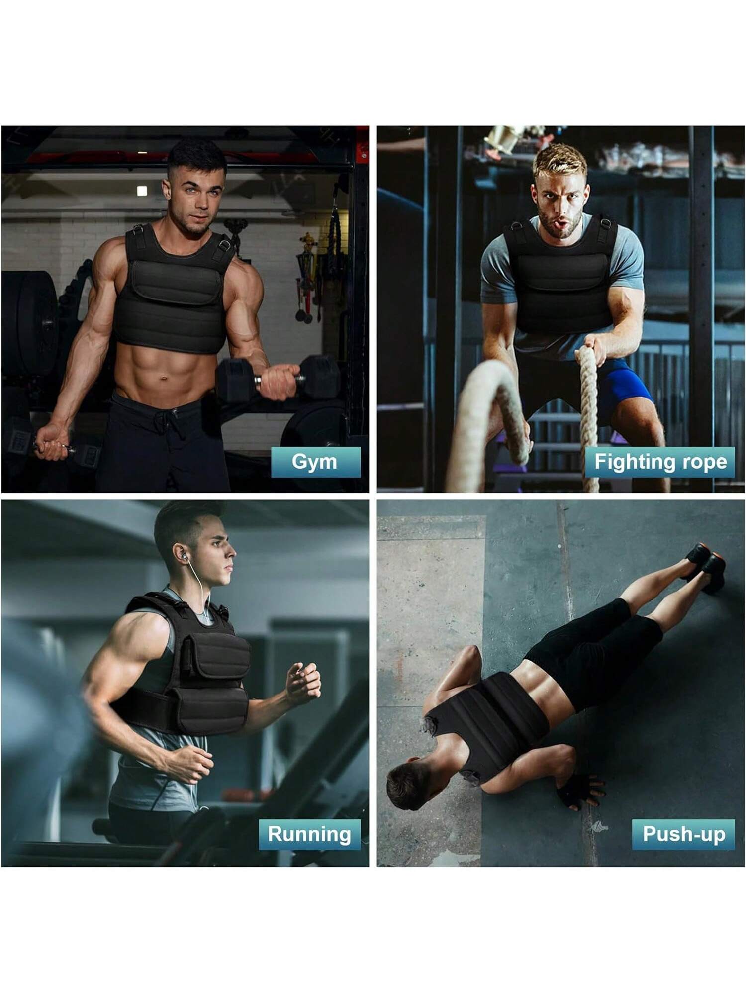 Qeetex Adjustable Weighted Vest 44 LB Weight Vest For Men Adjustable Wearable Weights With Iron Weights For Home Workouts And Strength Training Black