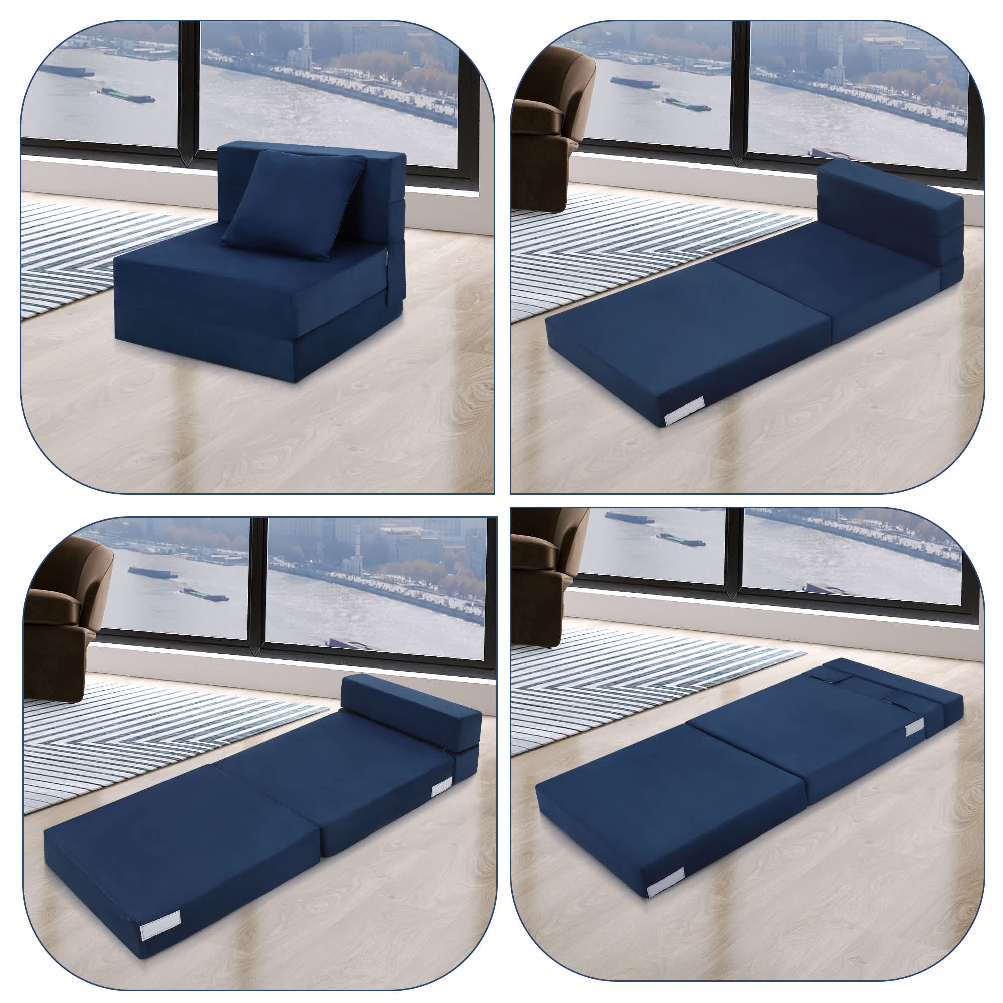 This multi-functional folding sofa bed easily converts into a floor sofa, chaise lounge, futon, or bed, offering versatile use for lounging, reading, or hosting guests. Crafted with high-density foam and a cozy pillow, it ensures ergonomic comfort, while the breathable, skin-friendly fabric and removable cover provide lasting cleanliness and softness. With no assembly required and a compact, elegant design, it fits seamlessly into any space or decor style.
