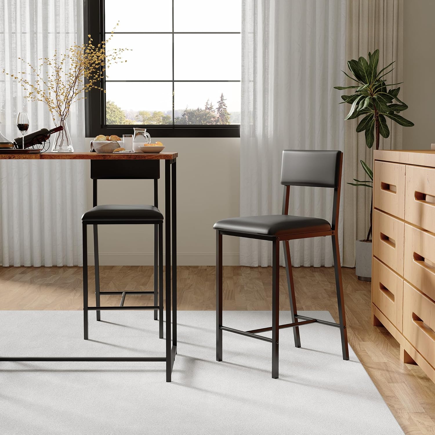 Qeetex Dining Chairs Set of 2 Upholstered PU Dining Chairs Curved Backrest - Modern Dining Room Chairs Kitchen Chairs with 26IN Metal Legs and Sturdy H-Frame for Home - Bar 330lbs Capacity - Black