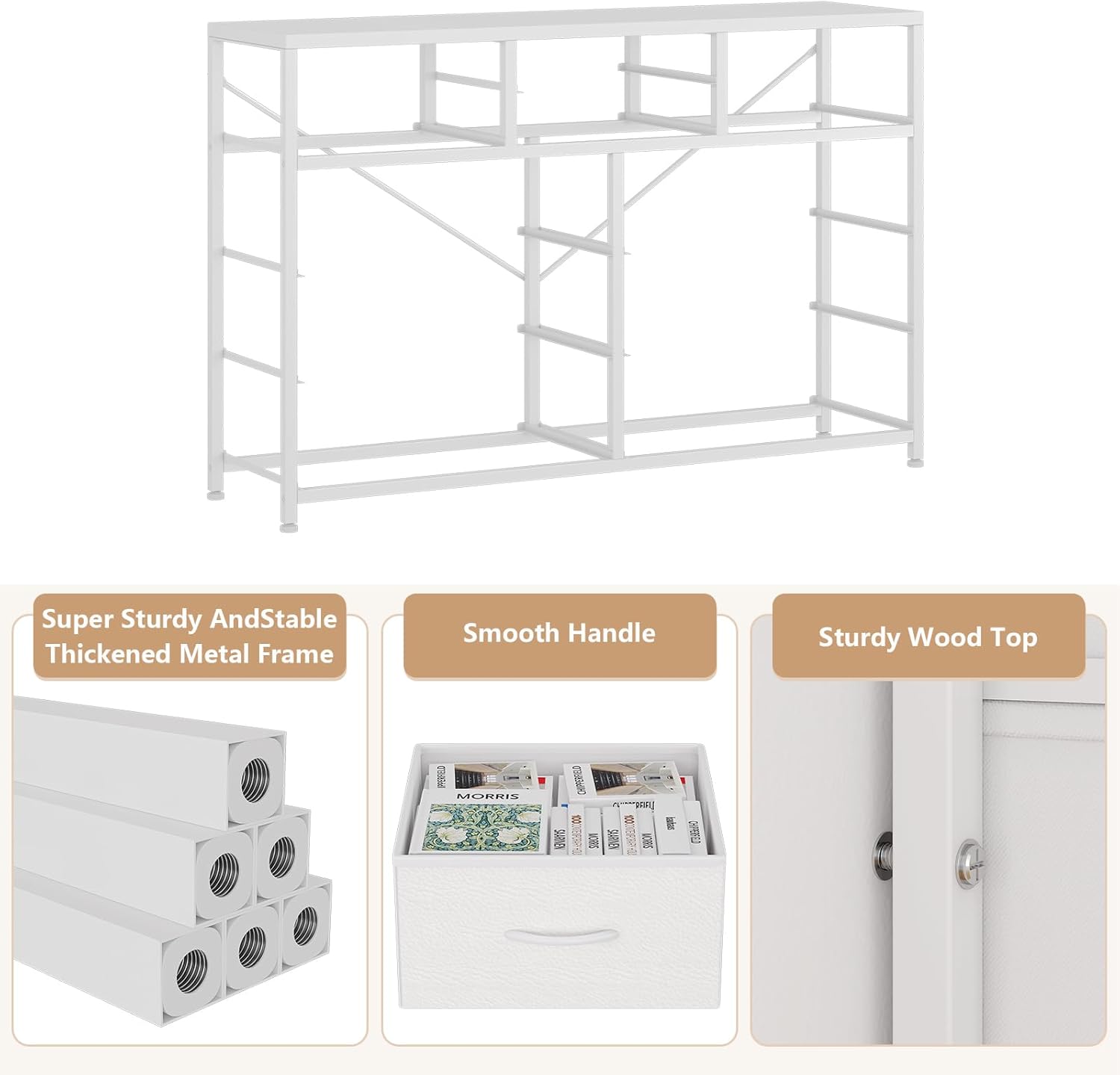 Qeetex Dresser TV Stand with 10 Drawers Media Console Table Entertainment Center for 55/50/43 Inch TV Chest of Drawers Storage Organizers Units for Living Room/Dorm/Closet/Entryway/Hallway