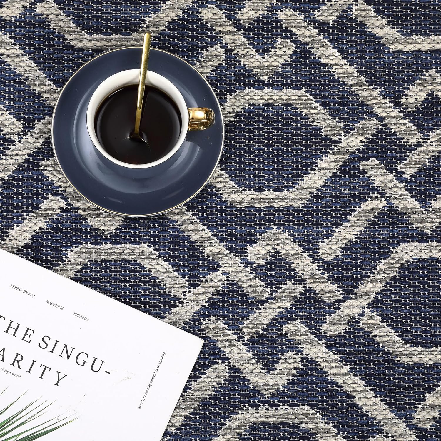 Qeetex Outdoor Geometry Modern Area Rug Turkish Style Washable Foldable Non-Slip Light Weight Carpet Stain-Resistant Breathable Easy to Clean Sturdy Design for Patio Garden Porch Lawn Blue