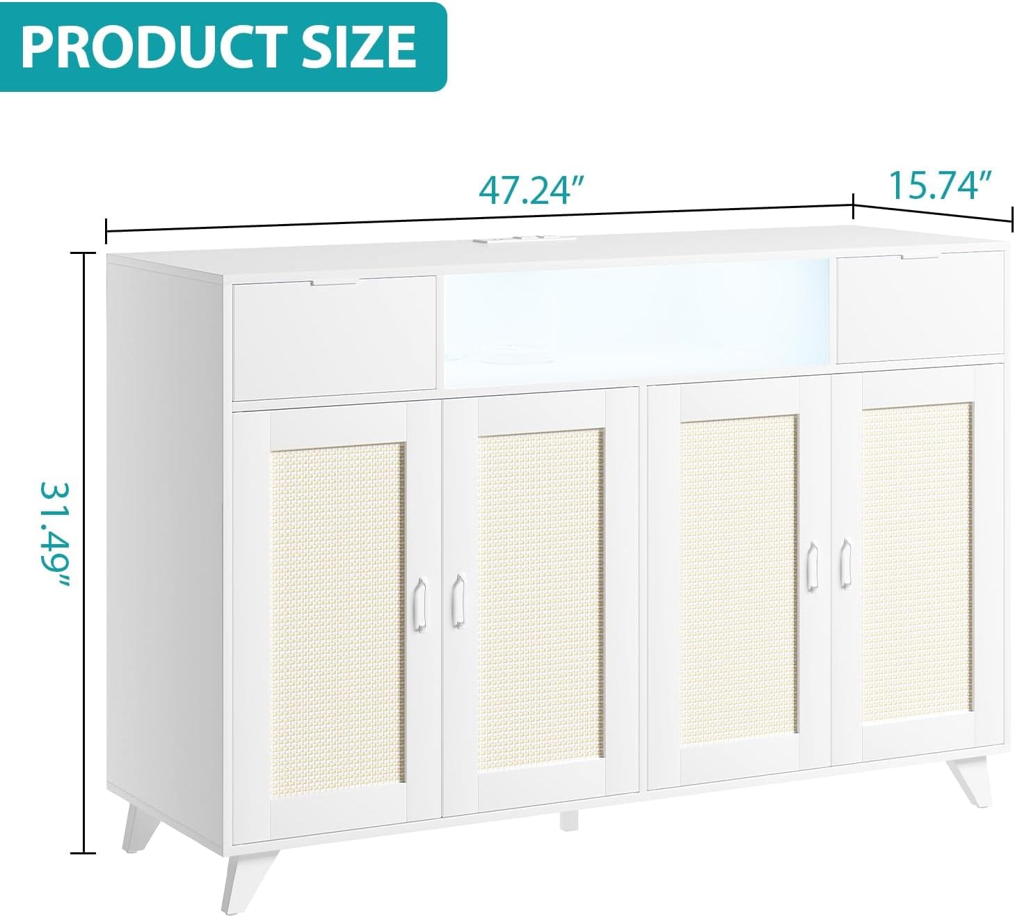 Qeetex Rattan Sideboard Buffet Cabinet with 2 Drawers Storage Boho (White)