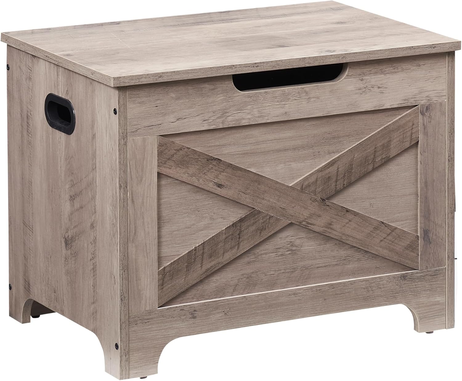 Qeetex Storage Chest Storage Bench with Safety Hinge Farmhouse Style Wooden Toy Chest for Entryway Bedroom Living Room Grey