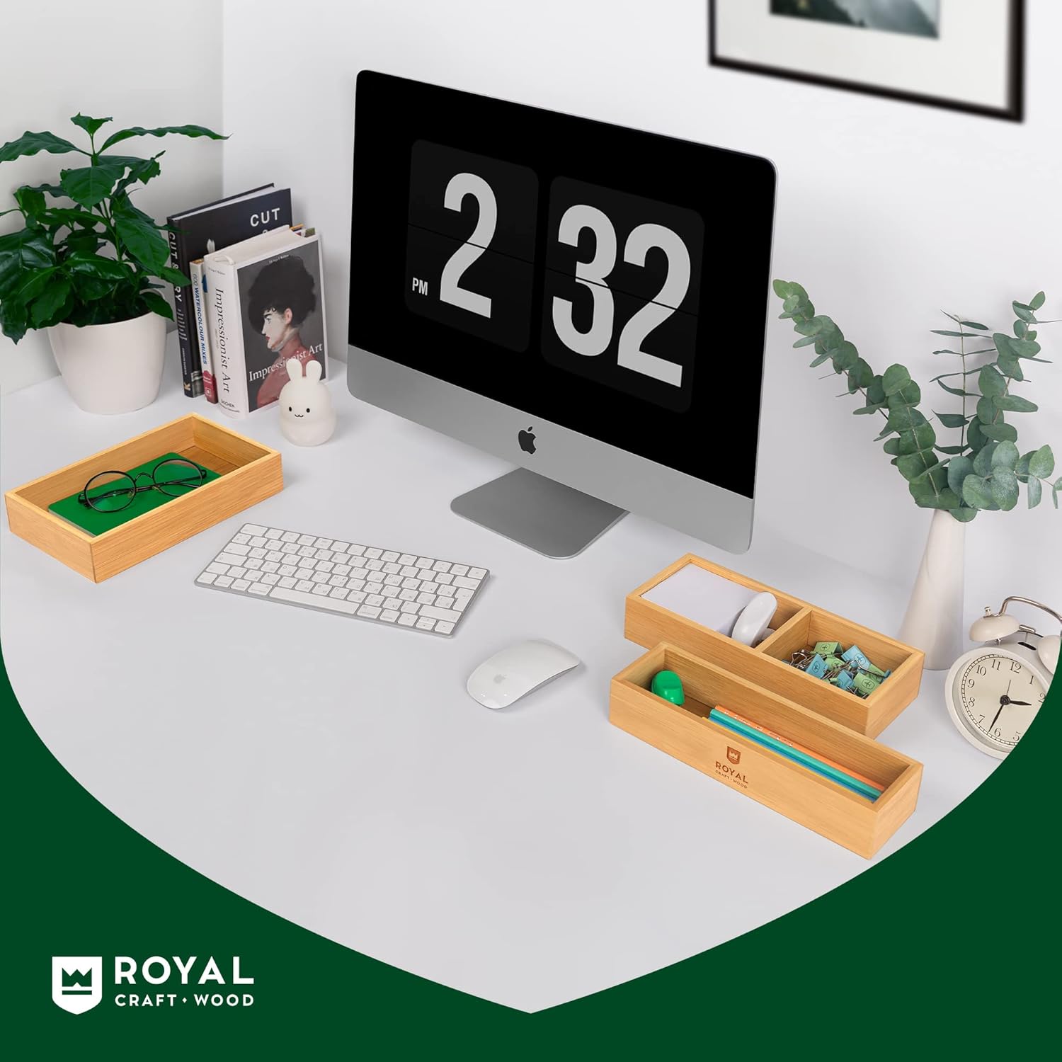 ROYAL CRAFT WOOD 12.4-Inches x 10.4-Inches Gold Bamboo Wood Stackable Drawer organizer