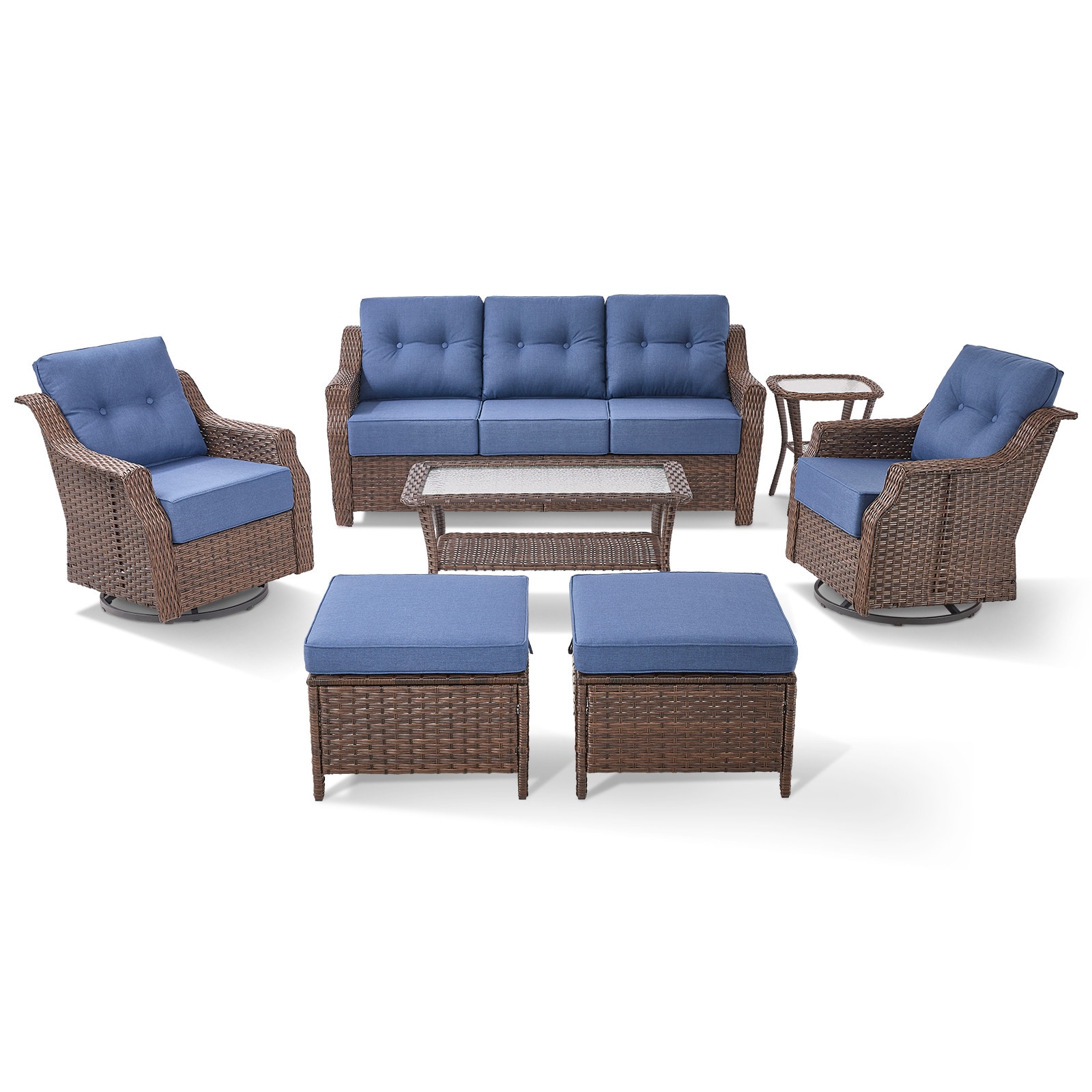 Rilyson 7 -Piece Wicker Patio Sofa Conversation Set with Blue Cushions