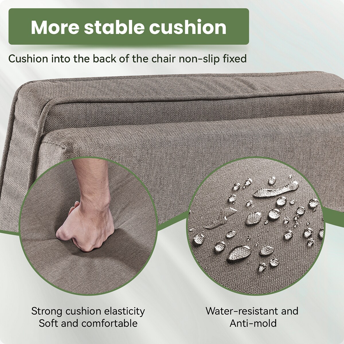- Olefin fabric and 100% polypropylene fiber back cushion, 28D high density sponge cushion, long lasting and durable.