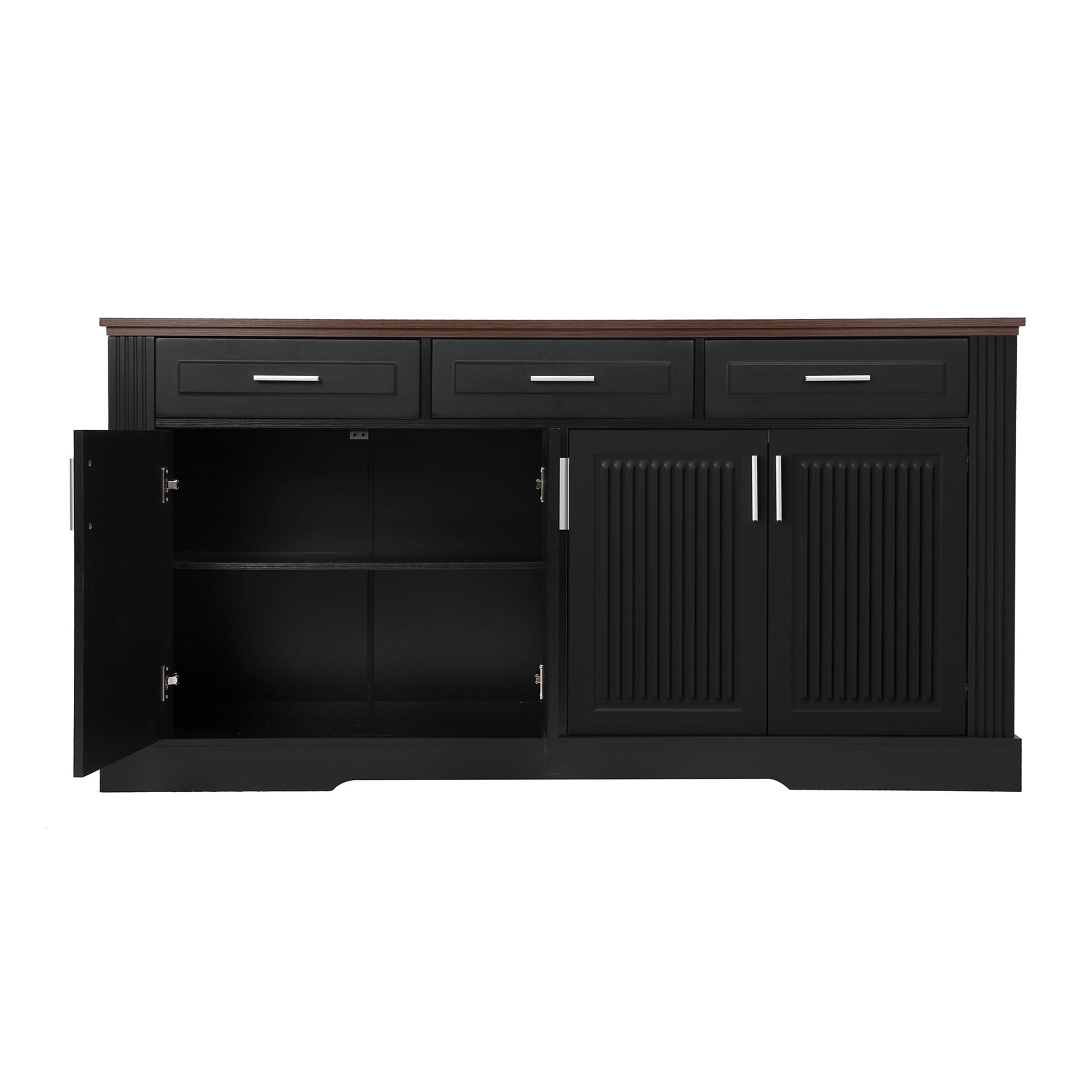 Designed with 4 fluted cabinet doors and 3 spacious drawers, this buffet cabinet provides generous storage for dishes, utensils, small appliances, and pantry items, The large tabletop is perfect for displaying a coffee maker, microwave, or decor pieces, The interior shelves are adjustable to accommodate items of different heights, ideal for wine bottles, glassware, books, or baskets, The three pull-out drawers help keep your space clutter-free and organized.