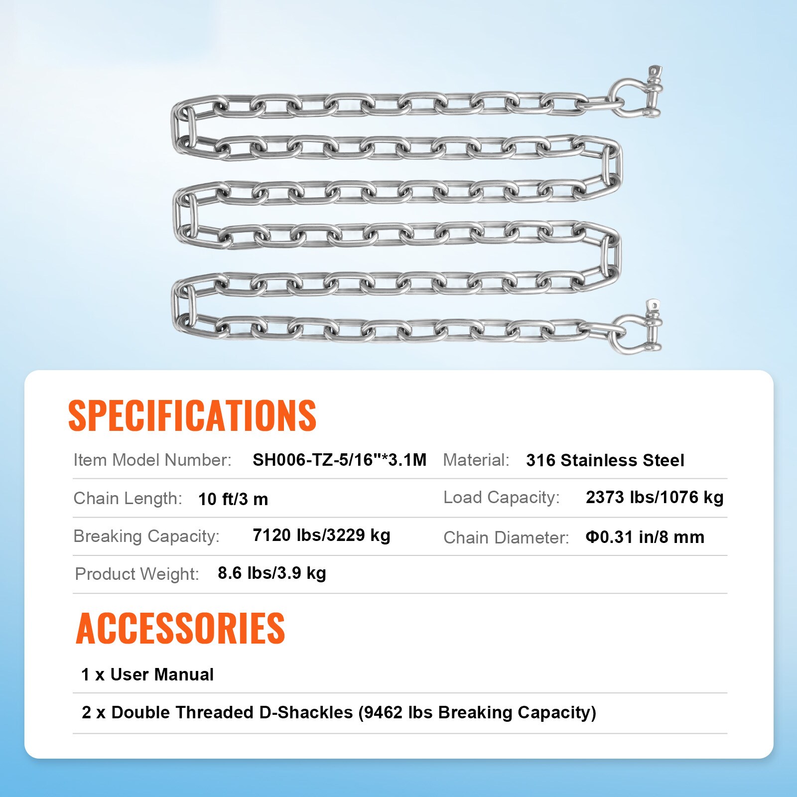 Chain Length: 10 ft/3 m
