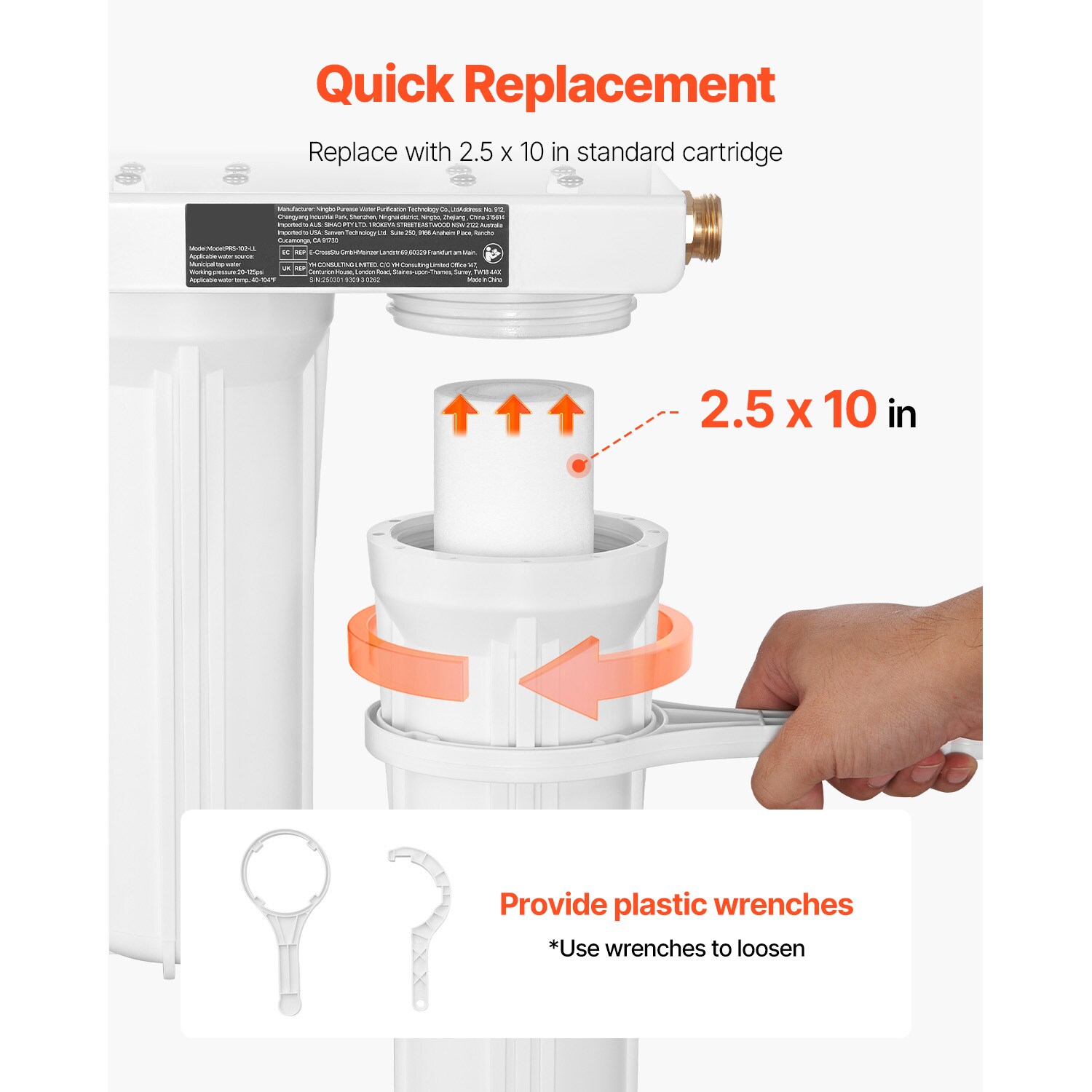 Cartridge Lifespan: 4500 Gal (Based on 1-2 ppm Chlorine Test),