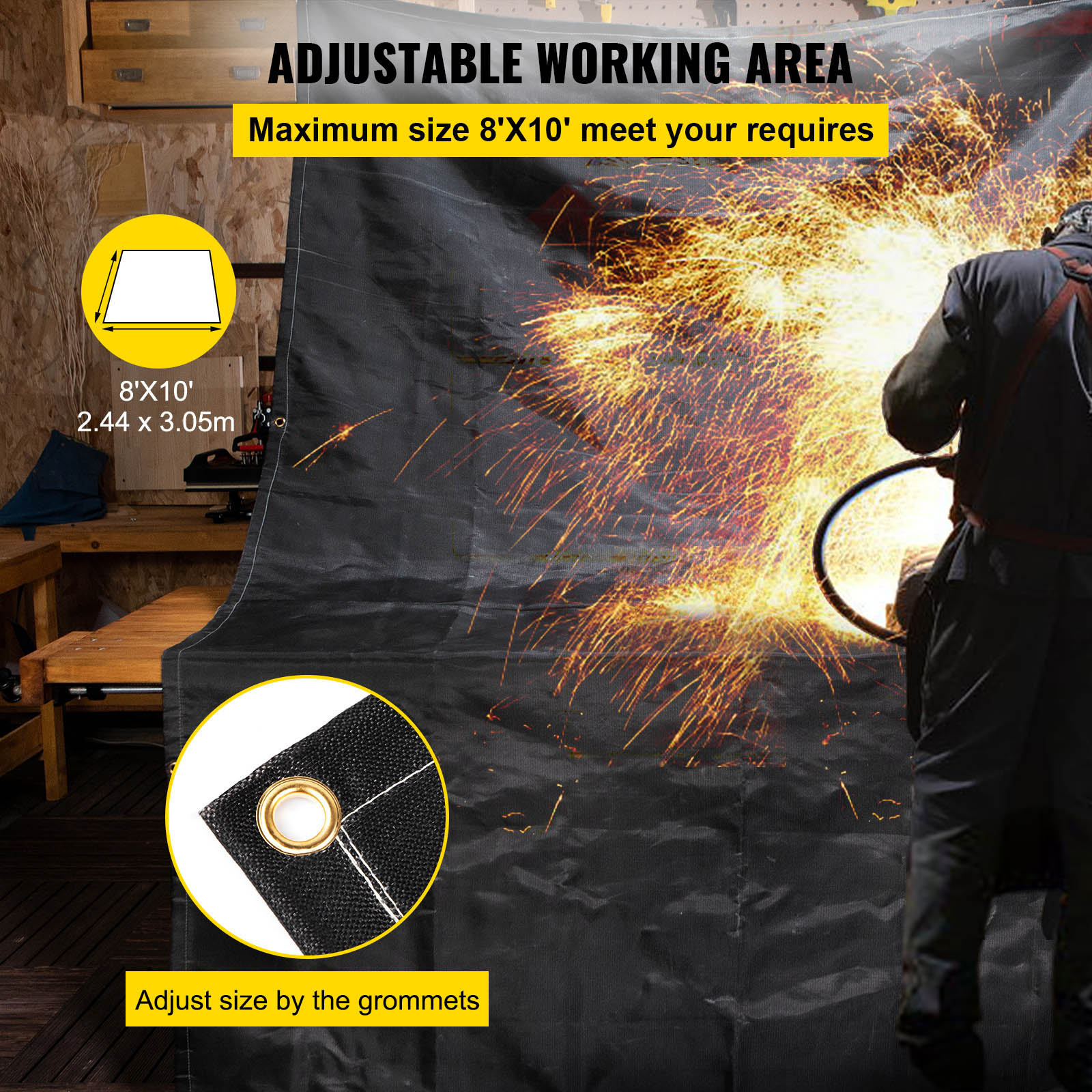 Adjustable Working Area: We've developed a reinforced hem for a fortified suspension in the air; The welding blankets have a lot of grommets for adjusting their size; Its largest area reaches up to 8' x 10' for more significant usage;