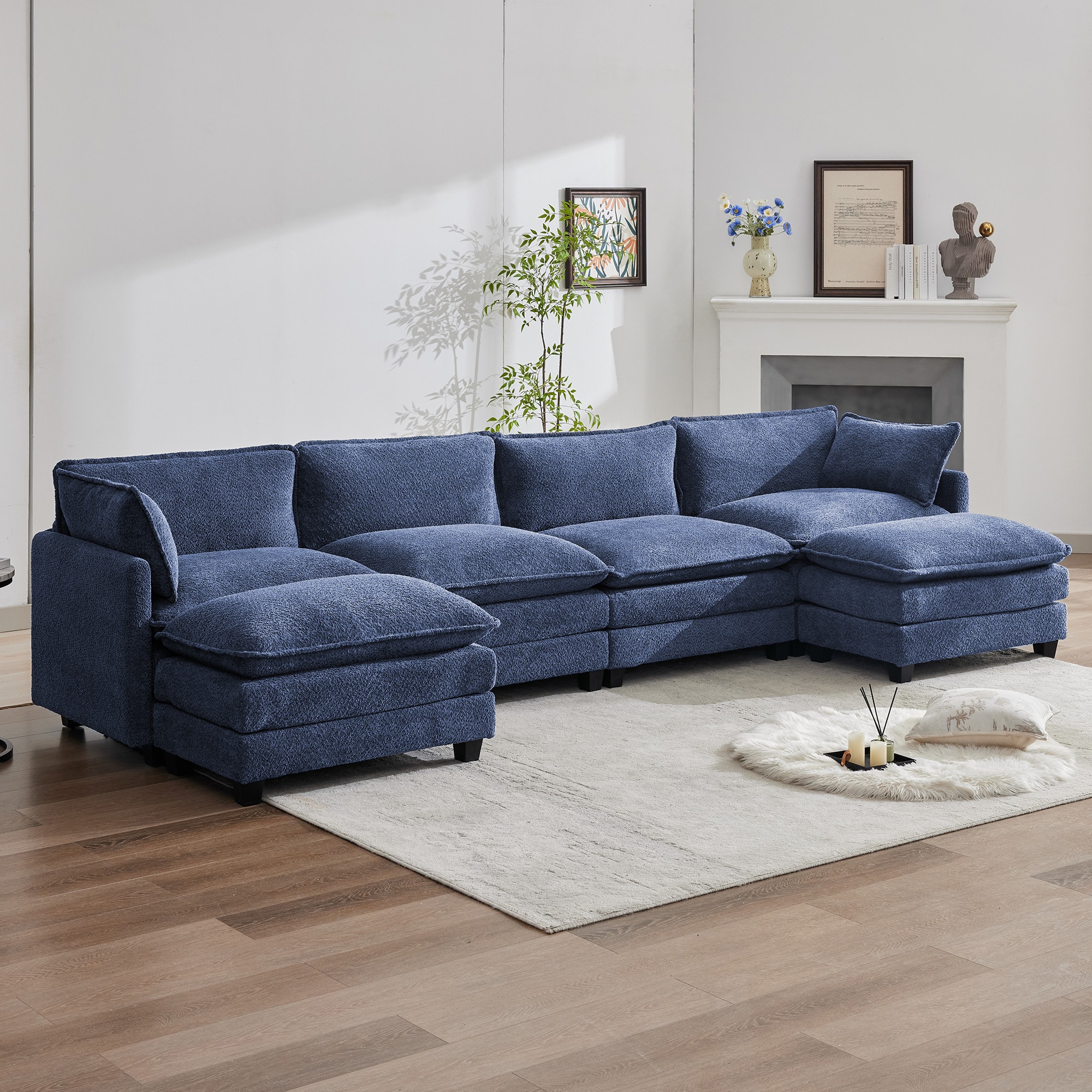VOUA 147.6-in W Casual Blue Chenille 4-seater Sectional