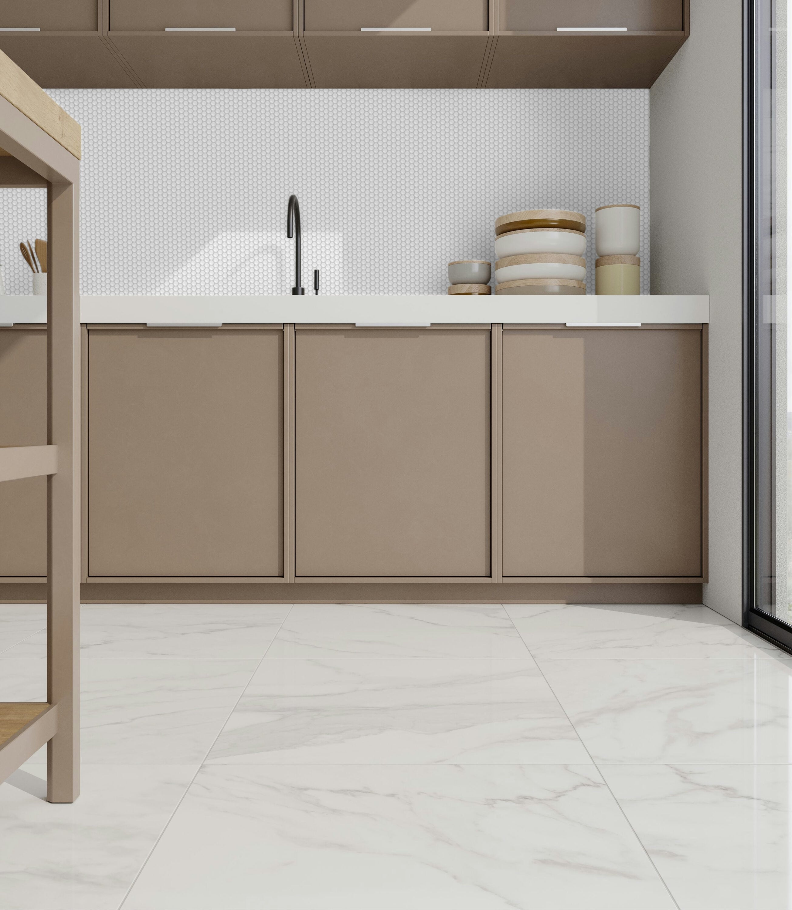 Satori Hudson Brilliant White 12-in x 12-in Glossy Porcelain Penny round Mosaic Wall Tile ( 0.9-sq ft Piece )
