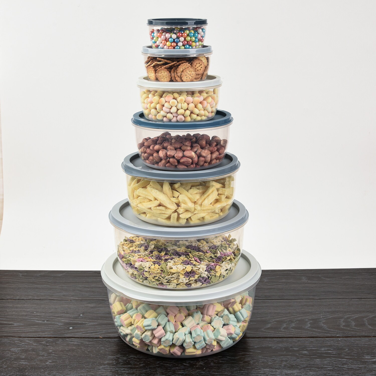 SharpChef 14PC Round Plastic Food Storage Container Set Stackable Nesting Airtight Leak proof Lids 7 Colors