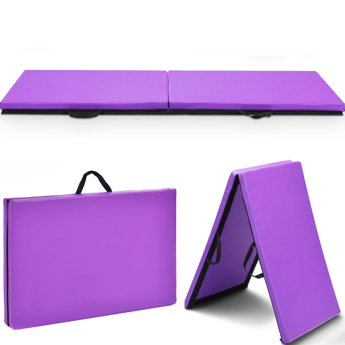 Slickblue PU Cloth Two-Panel Folding Gym Mat 6ft x 24in x 1.5in with Carry Strap for Gymnastics Stretching Home Studio RV Use- Purple/ Blue