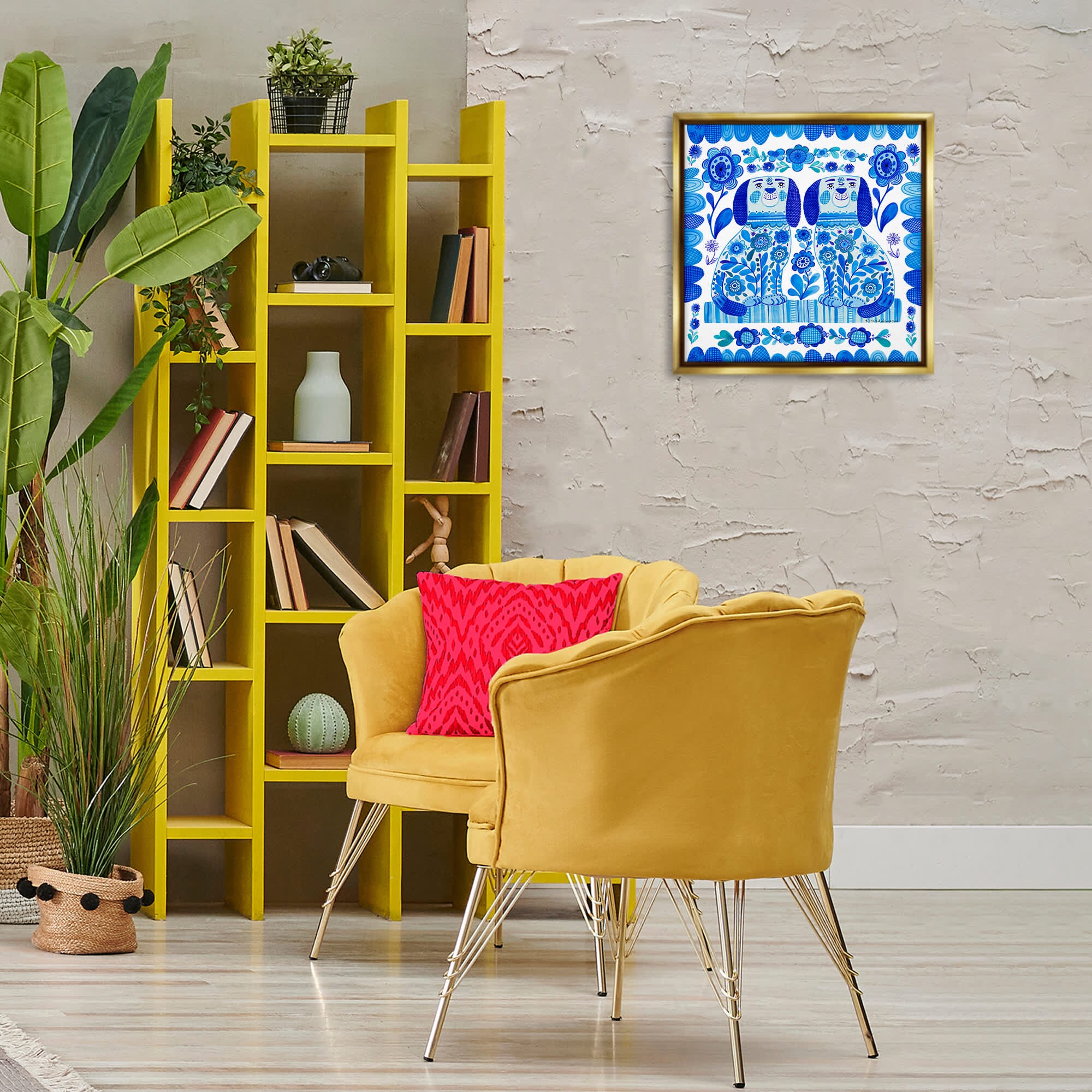 Stupell Industries Blue Folk Style Puppies Gold Framed Floater Canvas Wall Art By Kay Widdowson 18 x 18