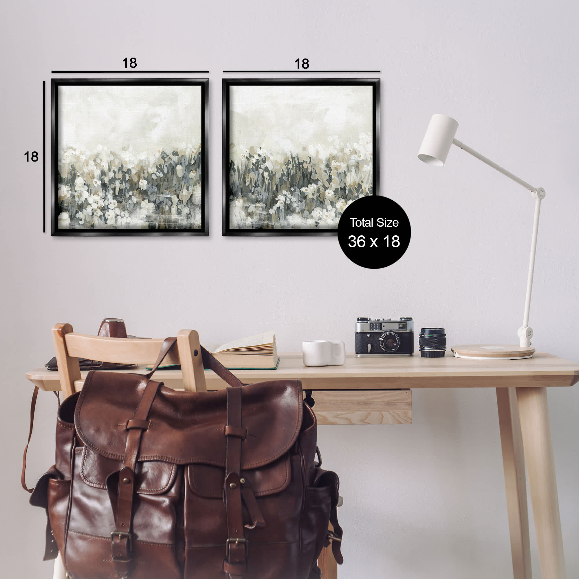 Stupell Industries Brushed Flower Meadow Impressions 2 Piece Black Framed Floater Canvas Set By June Erica Vess 18 x 18