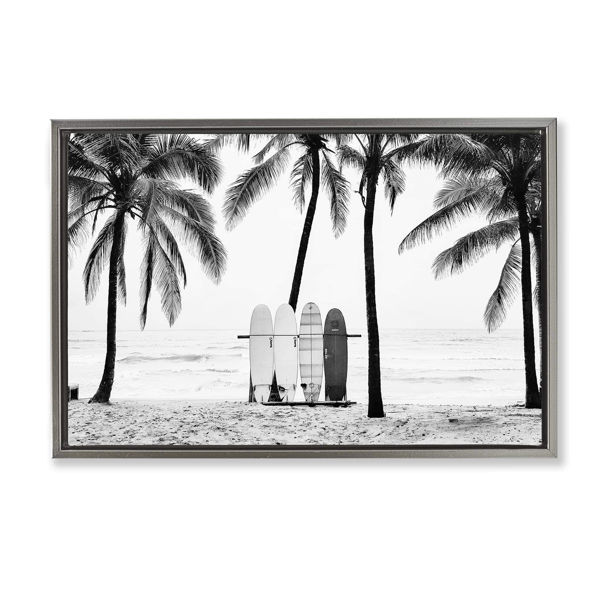 Stupell Industries Centered Surf Boards View Gray Floating Frame Canvas Art 31 x 21