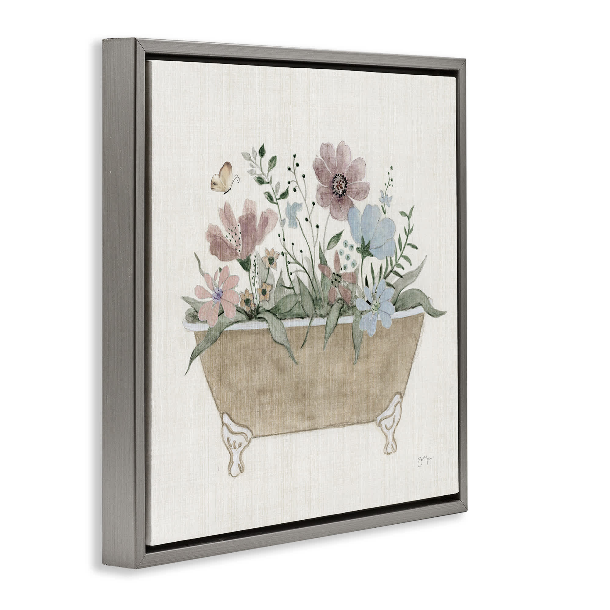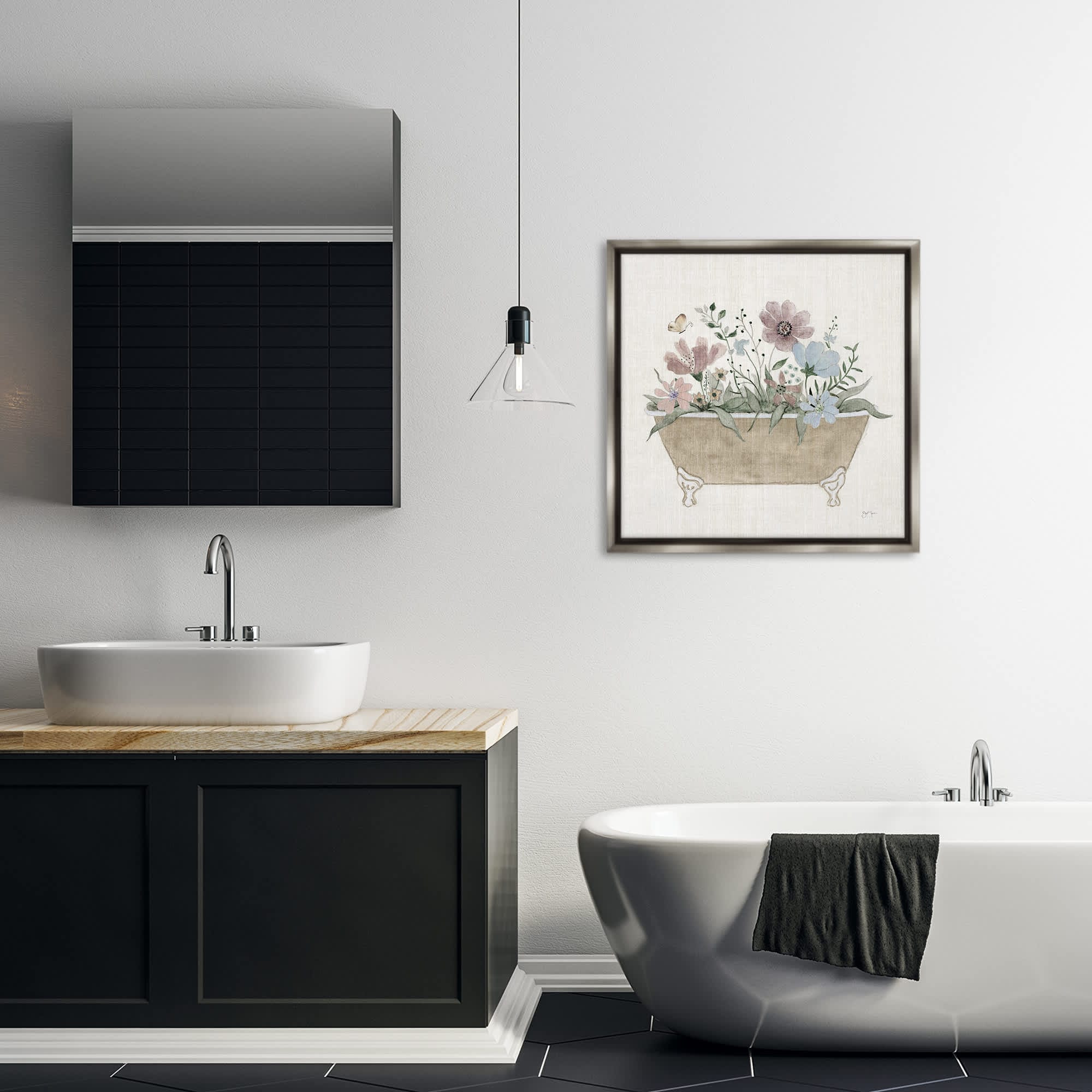 Stupell Industries Cottage Florals in Bathtub Gray Framed Floater Canvas Wall Art By Janet Tava 25 x 25