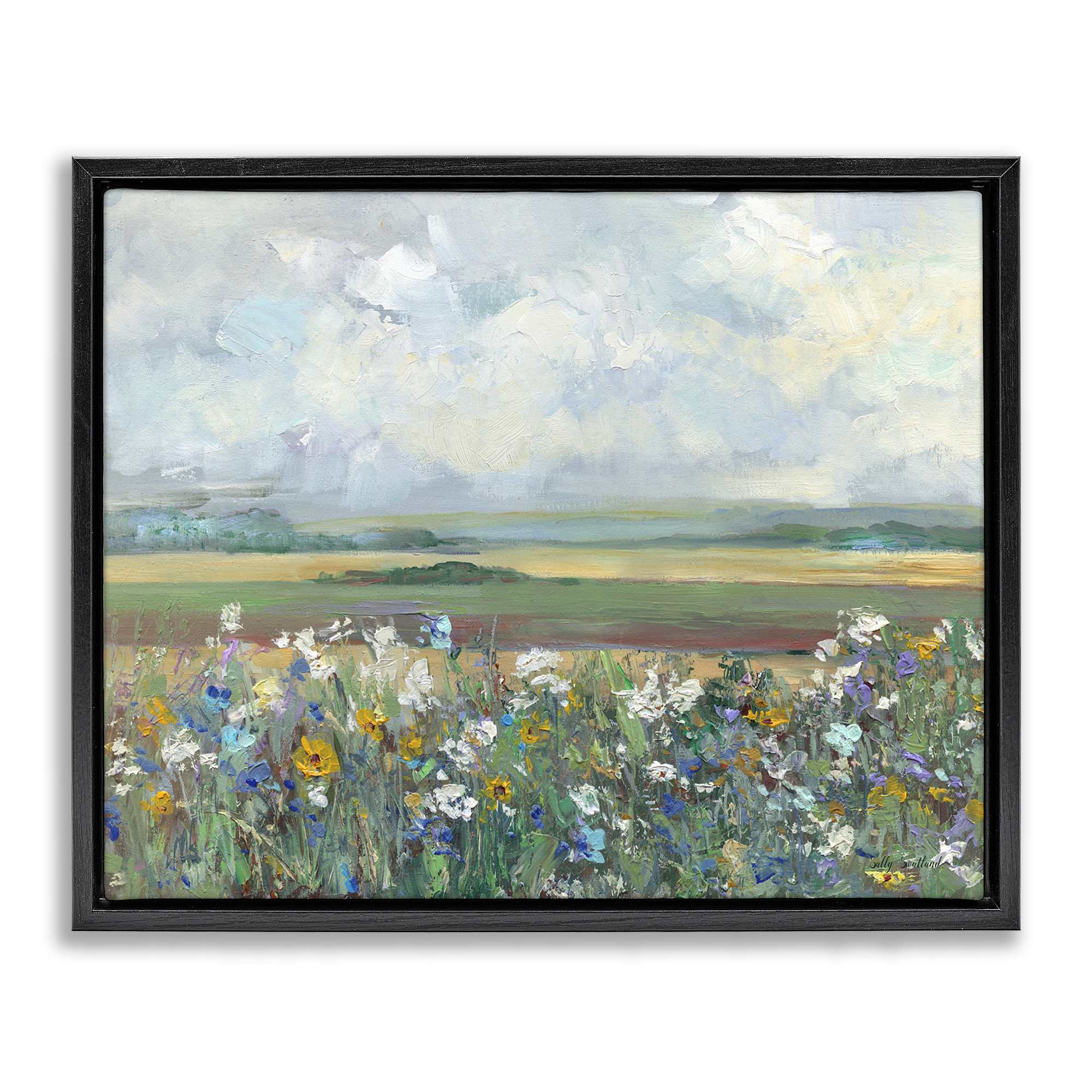 Stupell Industries County Meadow Clouds Overhead Black Framed Floater Canvas Wall Art By Sally Swatland 31 x 25