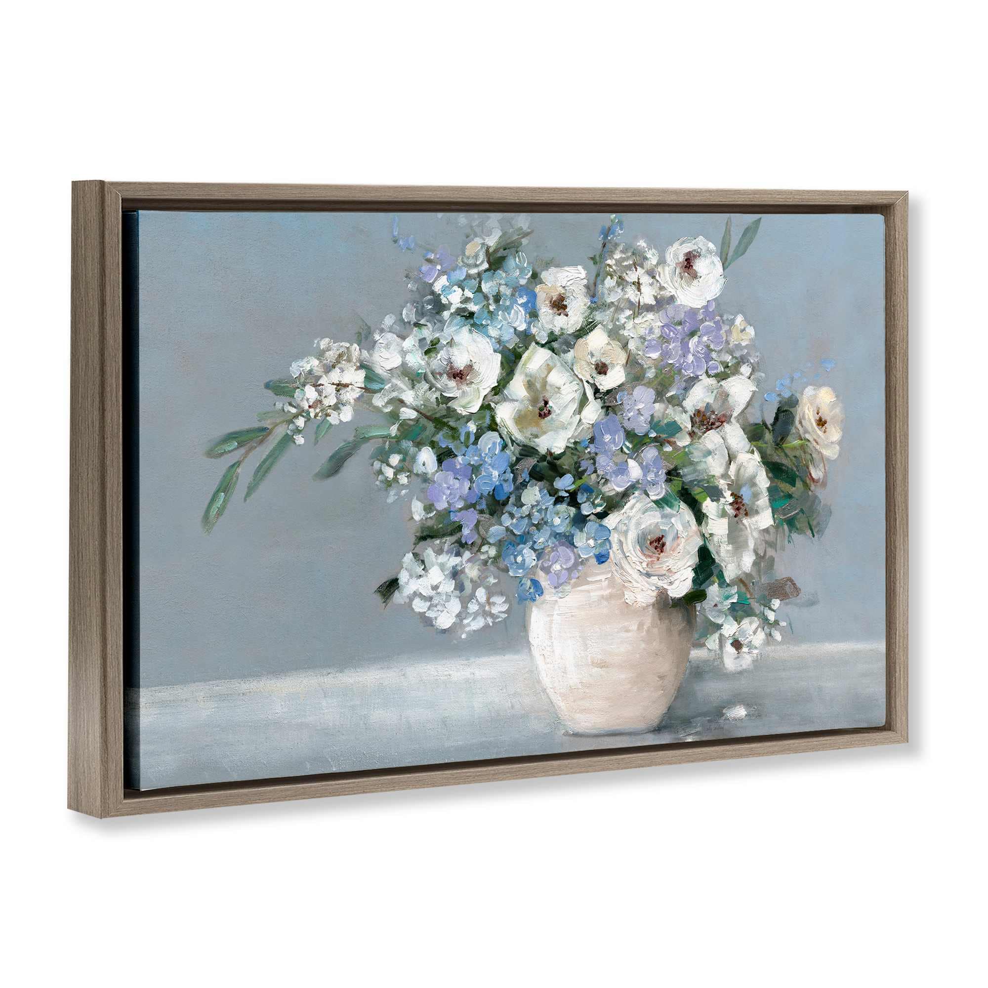 Stupell Industries Elegant Blooms on Blue Brown Framed Floater Canvas Wall Art By Sally Swatland 31 x 21