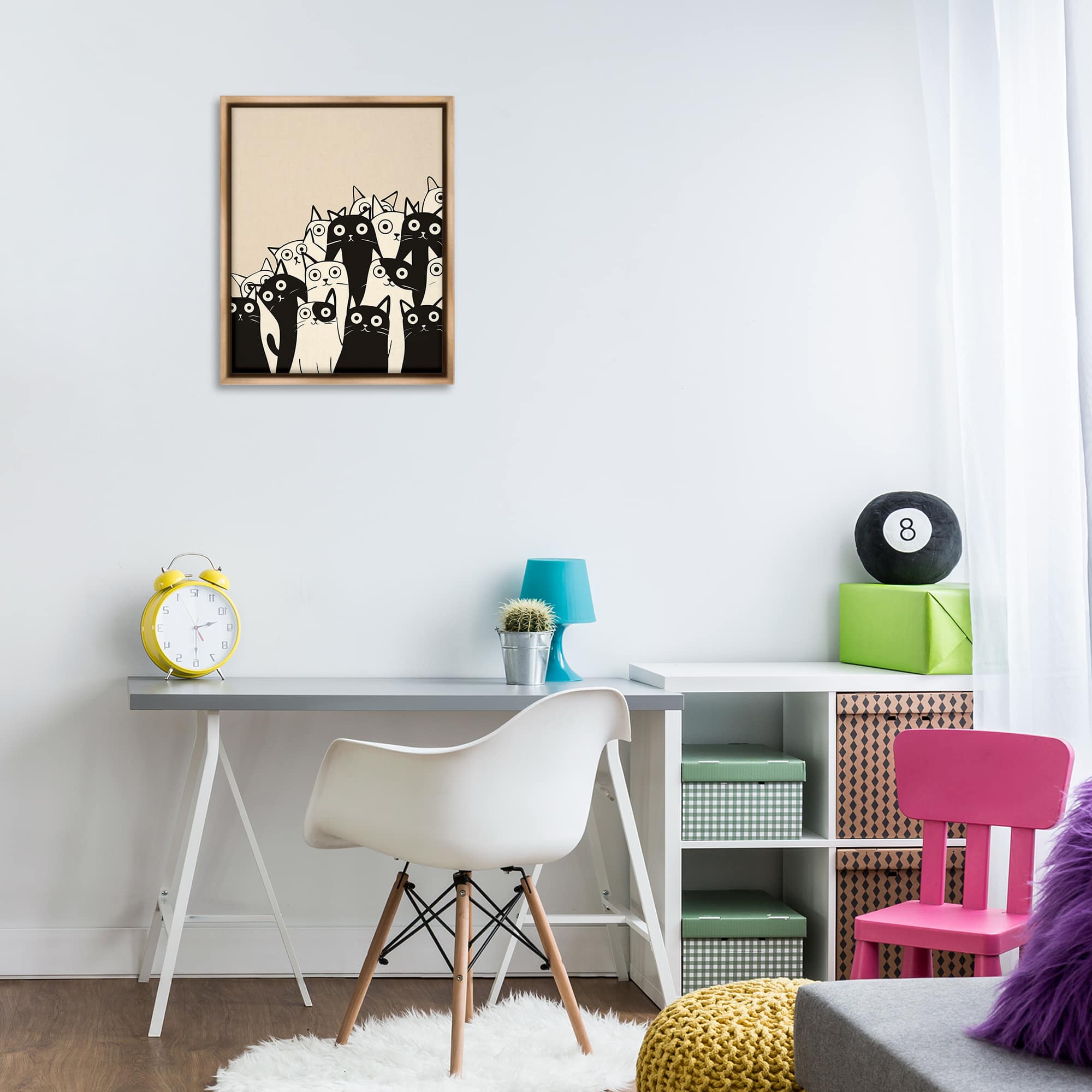 Stupell Industries Fun Modern Black and White Cats Brown Framed Floater Canvas Wall Art By Arlington Prints 17 x 21