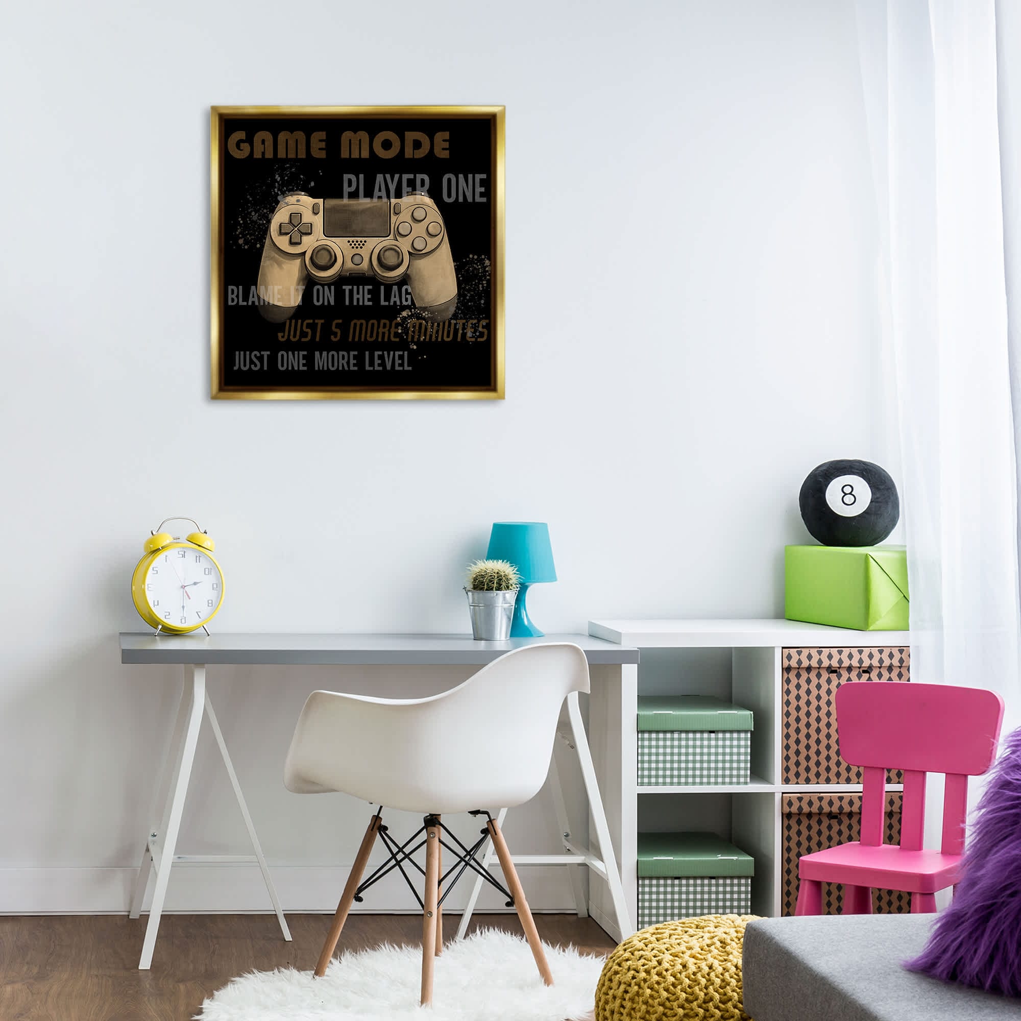 Stupell Industries Gamer Phrases Vintage Style Gold Framed Floater Canvas Wall Art By Kim Allen 25 x 25