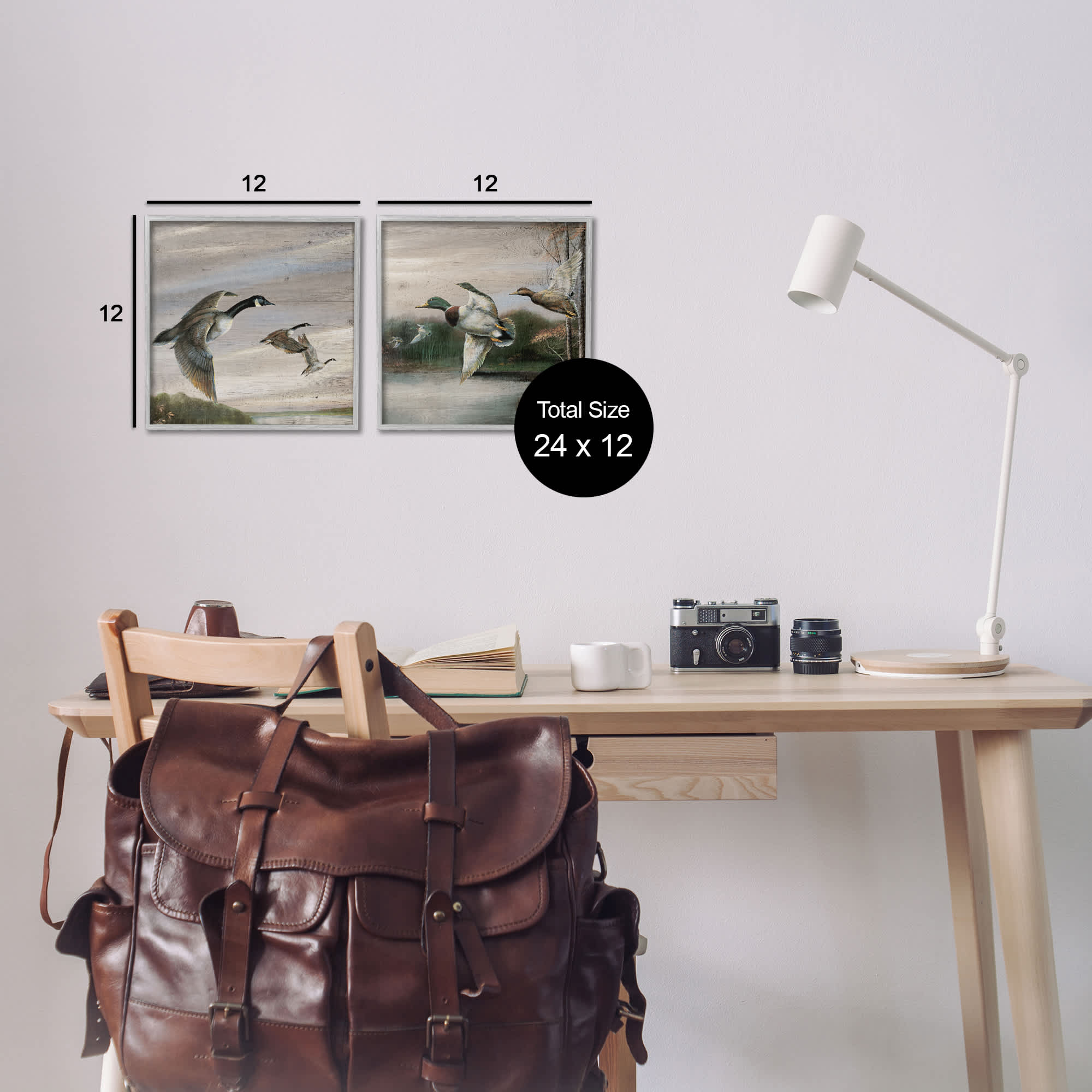 Stupell Industries Geese and Ducks in Nature 2 Piece Gray Framed Giclee Art Set By Ruane Manning 12 x 12