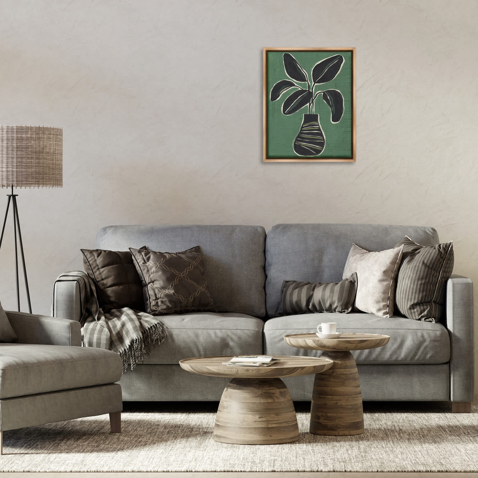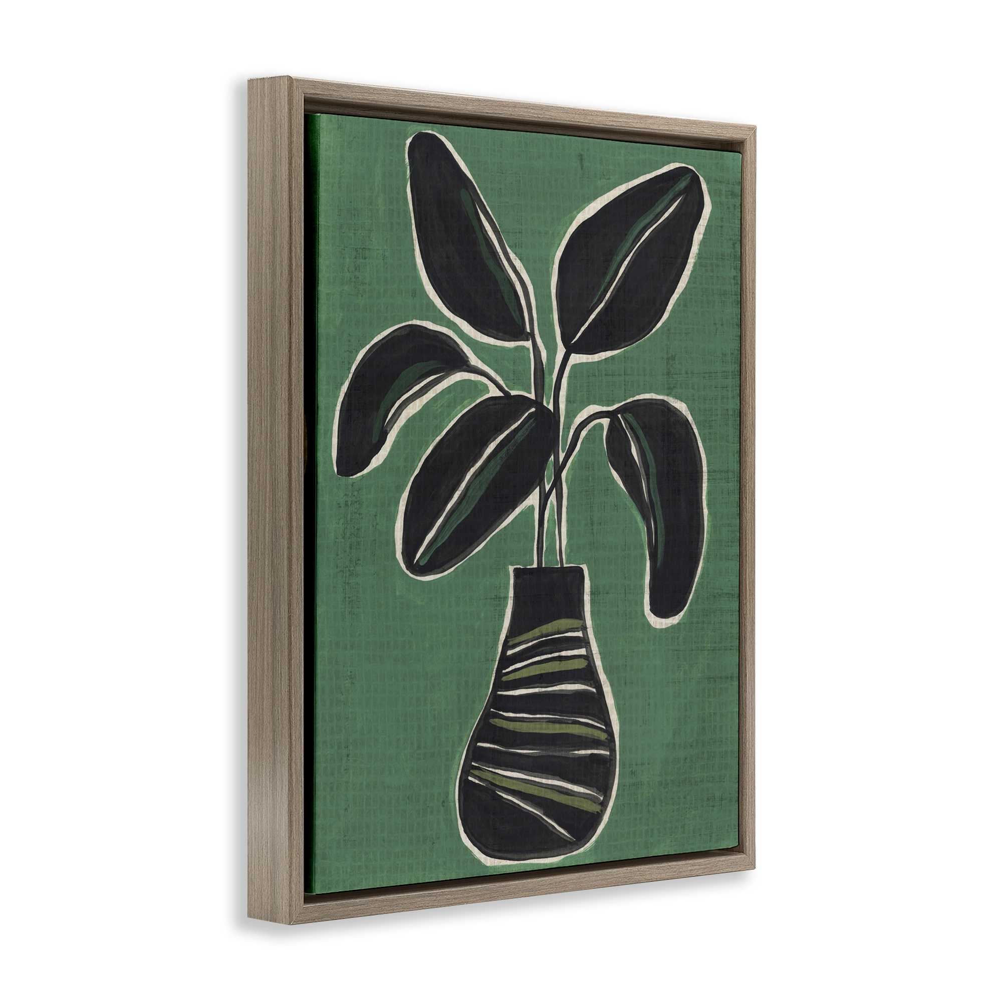 Stupell Industries House Plant on Green Brown Framed Floater Canvas Wall Art By June Erica Vess 17 x 21