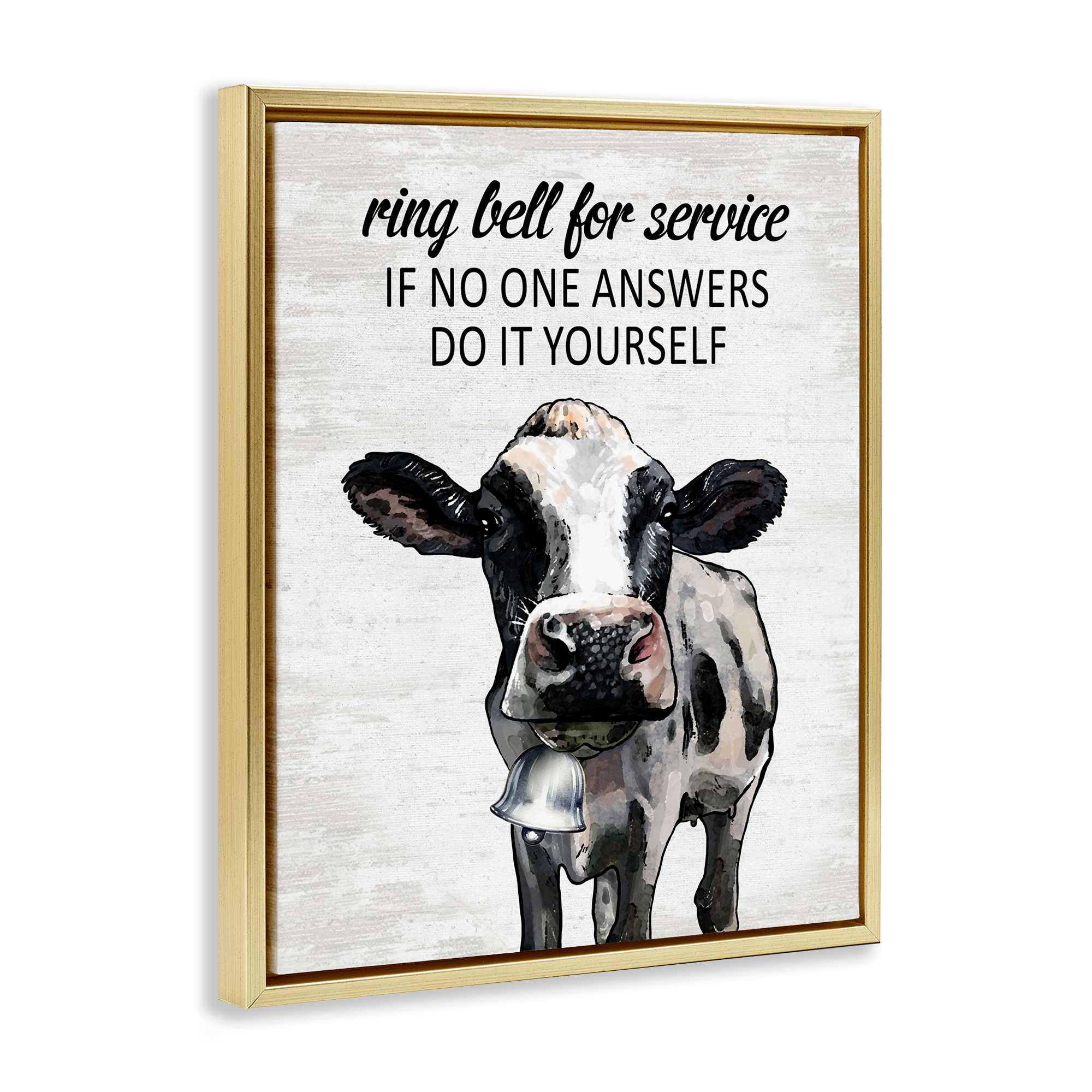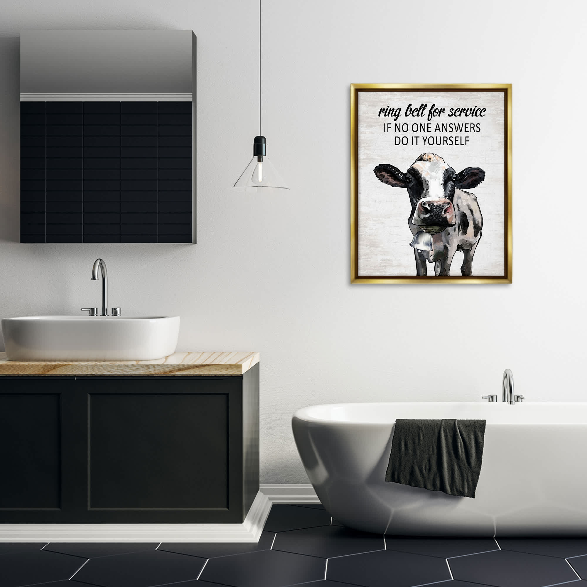 Stupell Industries Laundry Service Cow Gold Framed Floater Canvas Wall Art By Lettered and Lined 25 x 31